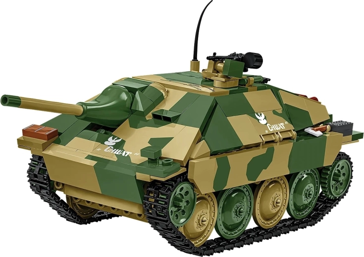 Model Jagdpanzer 38(t) „Chwat”, znany także jako „Hetzer”, wiernie odwzorowuje zdobyczny niszczyciel czołgów, który stał się symbolem pomysłowości i odwagi. Dzięki skali 1:28 wyróżniają się proporcje, detale powierzchni i precyzyjna sylwetka. Zdejmowany element pancerza odsłania realistycznie odwzorowane wnętrze — przedział załogi oraz część silnikową — a ruchome gumowe gąsienice zapewniają płynny ruch modelu podczas zabawy.