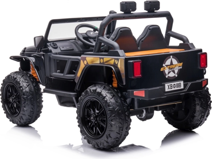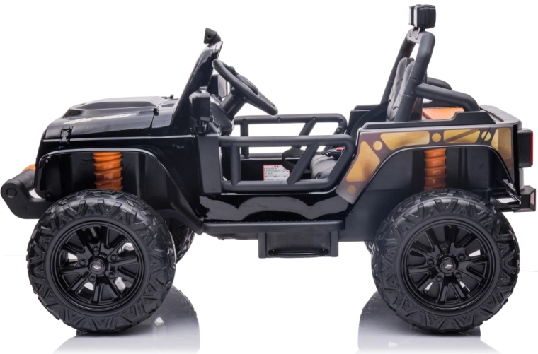 Jeep Monster to wydajny dziecięcy samochód elektryczny z napędem 4×200 W, który radzi sobie zarówno na gładkiej, jak i lekko nierównej trasie. Wysokie podwozie z prześwitem 21 cm, tylne zawieszenie oraz duże koła EVA 30×12 cm zapewniają świetny komfort i trakcję. Dzięki płynnemu startowi i wyborowi kierunku przód/tył dzieci z łatwością uczą się prowadzić.