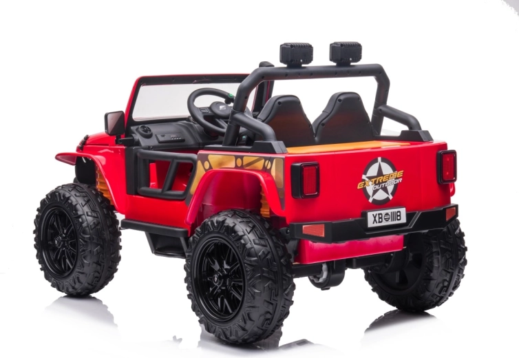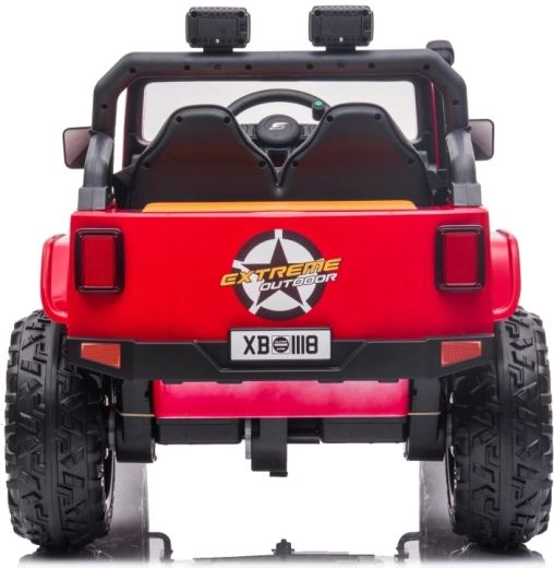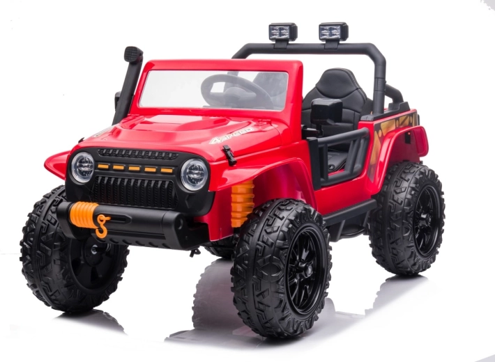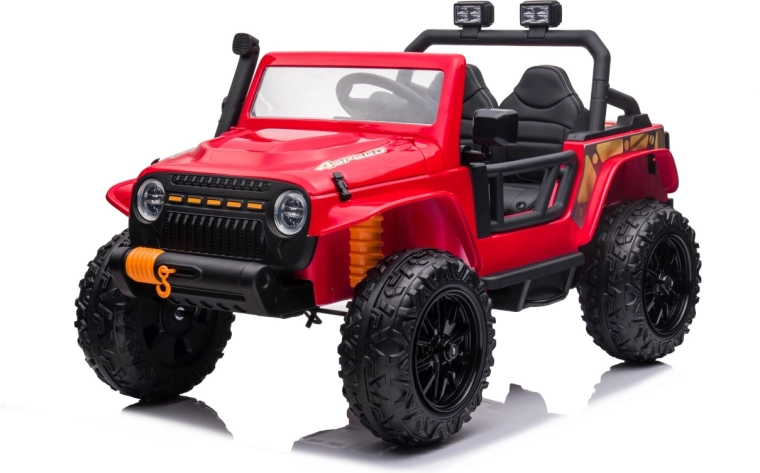 Jeep Monster 24V to dziecięce elektryczne autko terenowe, które poradzi sobie z przygodami w ogrodzie i na twardej nawierzchni. Cztery mocne silniki 4×200 W w połączeniu z akumulatorem 24 V 7 Ah zapewniają silny uciąg i płynną jazdę. Duże piankowe koła EVA 30×12 cm tłumią nierówności, a tylne zawieszenie podnosi komfort. Rodzice docenią pilot 2,4 GHz z trzema prędkościami i awaryjnym przyciskiem Stop.