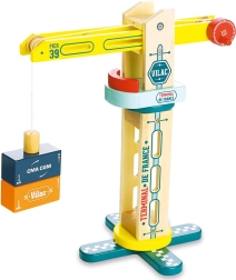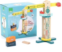 Drewniany portowy żuraw Vilac Vilacity to idealny dodatek dla małych budowniczych i miłośników kolejek. Dzięki systemowi magnetycznemu dzieci łatwo chwytają i przenoszą ładunek, a solidna konstrukcja umożliwia płynne obracanie i przesuw w wielu kierunkach.