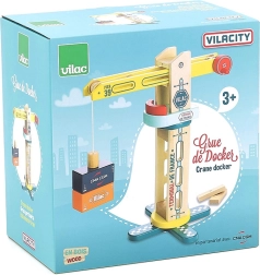 Odkryj zabawę w porcie z drewnianym żurawiem Vilac Vilacity, który dzięki magnetycznemu chwytowi z łatwością przenosi kontenery. Żuraw jest obrotowy, umożliwia pionowe i poziome przemieszczanie ładunku i jest w pełni kompatybilny z kolekcją Vilacity. Wykonany ekologicznie i przyjaźnie dla środowiska.