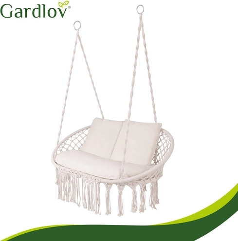 - huśtawka GARDLOV, 3 poduszki, metalowe oczka do zawieszenia, liny, wielojęzyczna instrukcja, karton transportowy