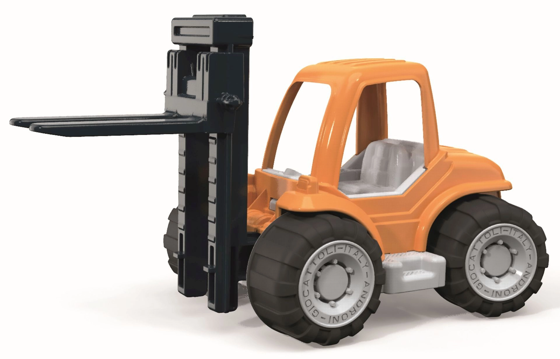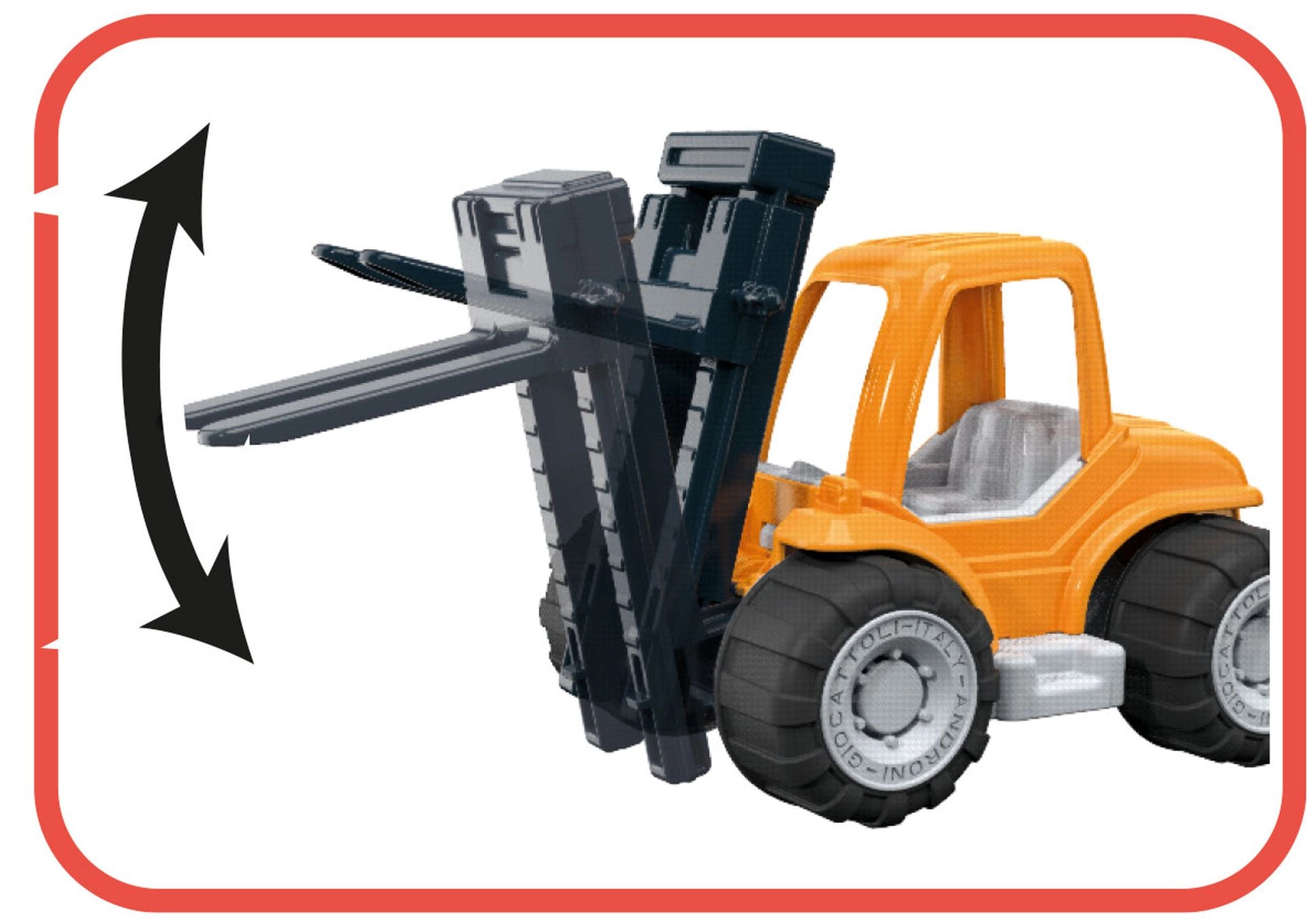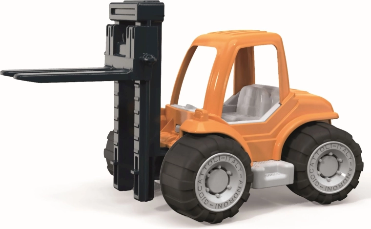 Solidny plastikowy wózek widłowy z linii Millennium marki Androni ucieszy małych budowniczych już od 10 miesięcy. Ma ruchomy podnośnik wideł, gumowane koła dla stabilności i jest dostarczany z kartonowymi bloczkami do tworzenia scenariuszy zabaw. Wyprodukowano we Włoszech z wysokiej jakości tworzyw sztucznych.