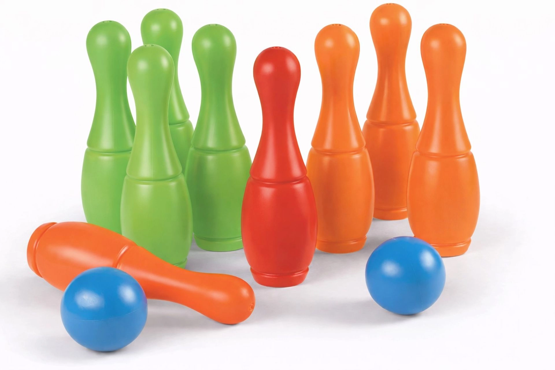 Zestaw zaprojektowano z myślą o łatwym użytkowaniu: otwory do napełniania po uzupełnieniu zamyka się małymi zatyczkami, które są częścią czarnego uchwytu na kręgle. Dzięki wysokości kręgli 27 cm gra jest czytelna także dla młodszych dzieci i wspiera rozwój motoryki, koordynacji i precyzji.