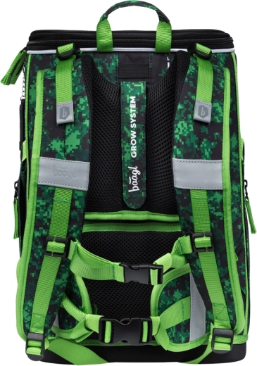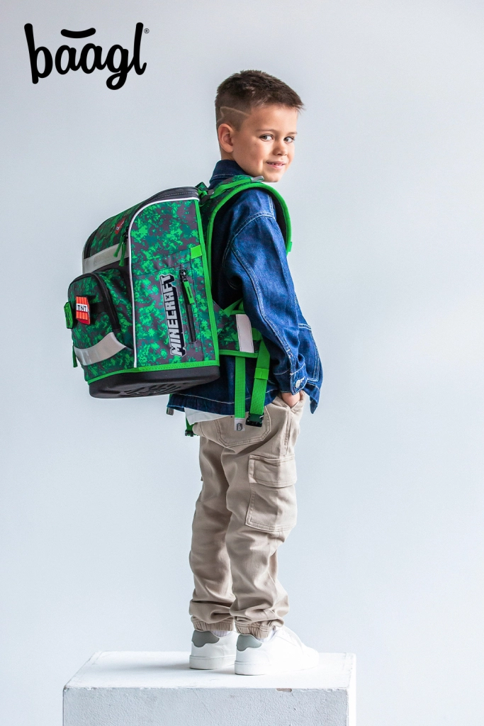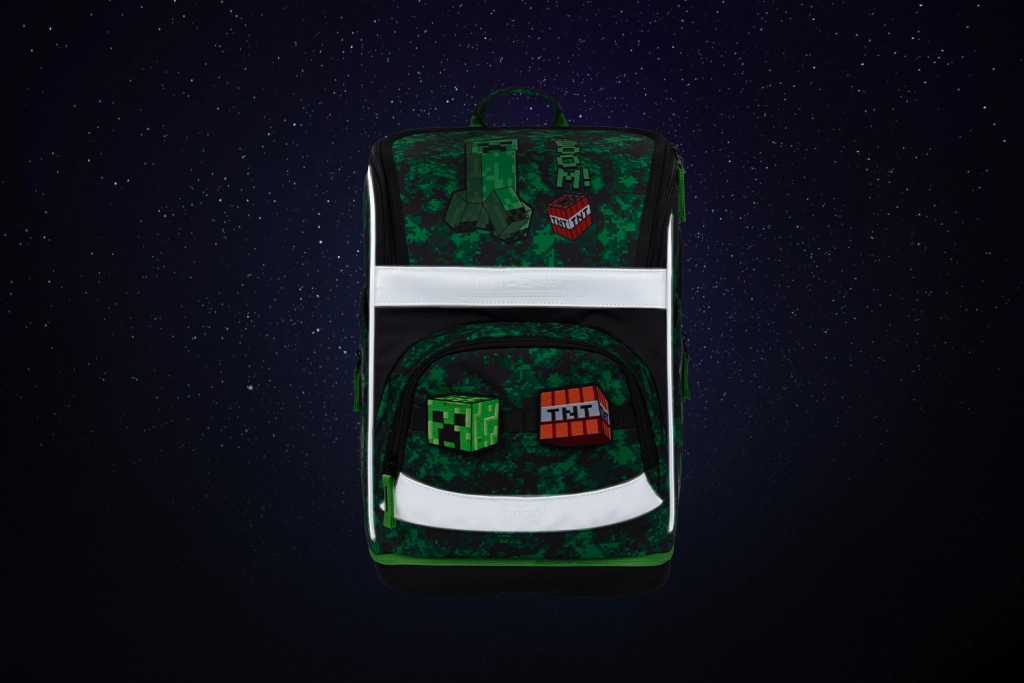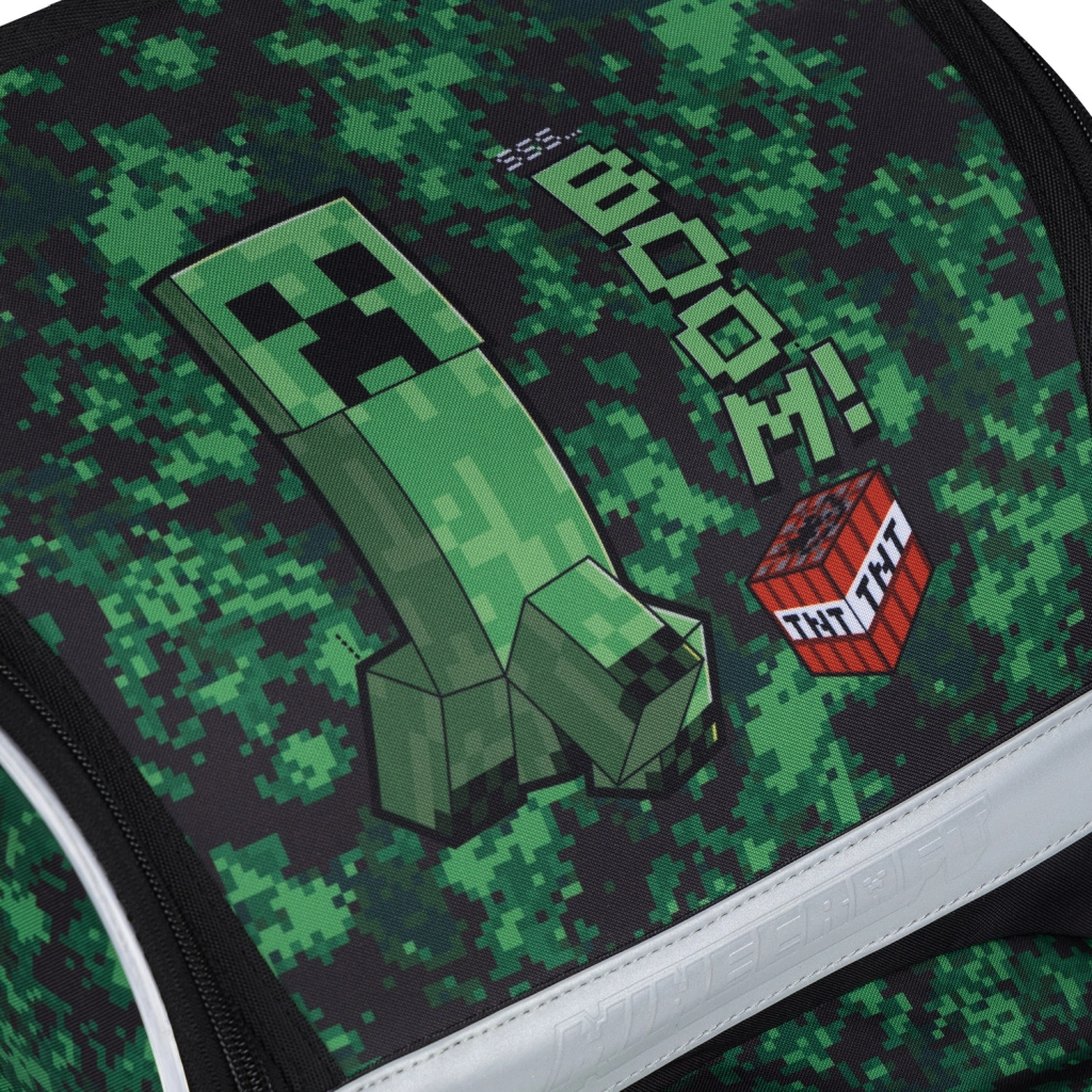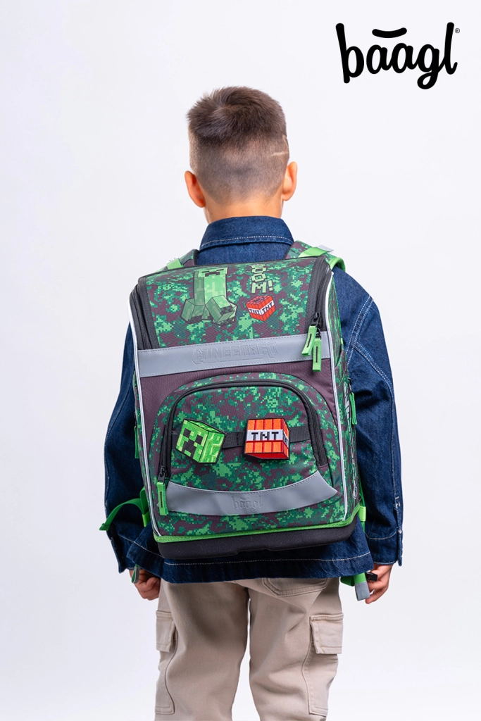 Cały zestaw zdobią motywy z gry MINECRAFT z pikselowym kamuflażem oraz elementy odblaskowe dla lepszej widoczności. Zamki YKK zapewniają długą żywotność i płynne zapinanie, a wodoodporne materiały z recyklingu sprostają wymaganiom szkolnej codzienności.