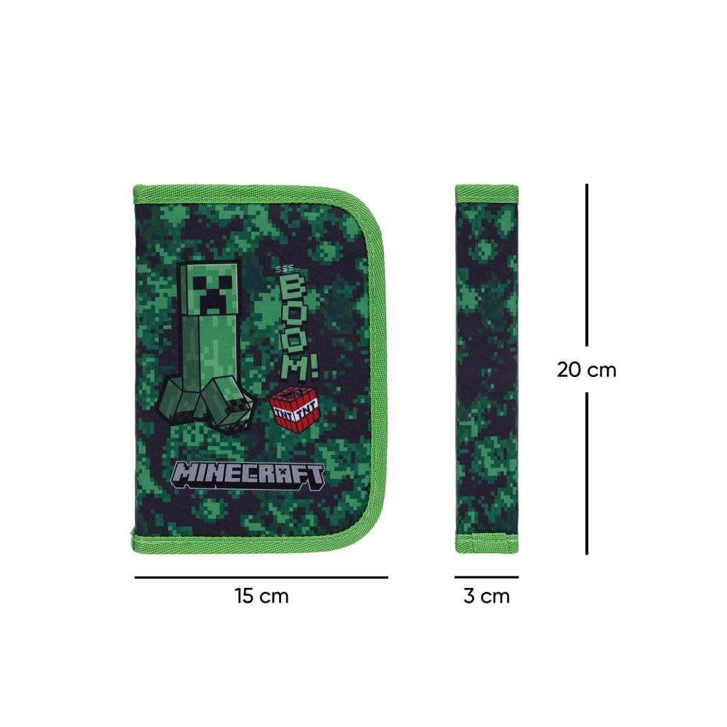 Stylowy szkolny piórnik z motywem MINECRAFT Boom oferuje praktyczne jednopoziomowe wykonanie z dwiema klapkami, trwały zamek YKK oraz przejrzysty układ. W środku znajdziesz kieszonkę na drobiazgi, okienko na plan lekcji oraz mocne gumki kompatybilne także z trójkątnymi kredkami i flamastrami. Piórnik jest bez wyposażenia i wykonany z materiału z recyklingu.