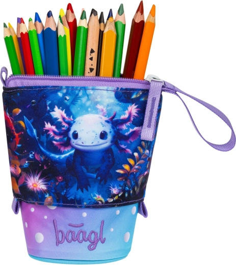 Stylowy i wytrzymały szkolny piórnik Pastelkovník BAAGL z motywem Axolotla łączy nowoczesny design, zrównoważone materiały i maksymalną praktyczność. Oferuje trwały, wodoodporny materiał, przejrzystą organizację przyborów do pisania oraz sprytną funkcję stojaka jednym ruchem. Nie brakuje tajnej wewnętrznej kieszeni i certyfikatu GRS potwierdzającego udział materiałów z recyklingu.
