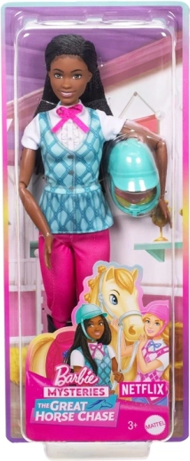 Przeżyj przygodę z lalką BARBIE Brooklyn inspirowaną serialem Barbie Mysteries: The Great Horse Chase. Stylowy jeździecki strój, ruchome stawy oraz zdejmowane akcesoria, takie jak kask jeździecki i wysokie oficerki, zapraszają do kreatywnej zabawy, opowiadania historii i pozowania.
