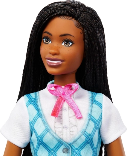 Lalka Barbie Brooklyn występuje w nowoczesnej jeździeckiej stylizacji: biała koszula z wzorem argyle, turkusowa kamizelka, różowe bryczesy i wysokie czarne buty. W zestawie znajduje się jasnoniebieski zdejmowany kask, dzięki któremu zabawa w przejażdżki i wyścigi jest jeszcze bardziej realistyczna. Starannie wykonane warkoczyki i delikatne rysy twarzy podkreślają premiumowy wygląd.
