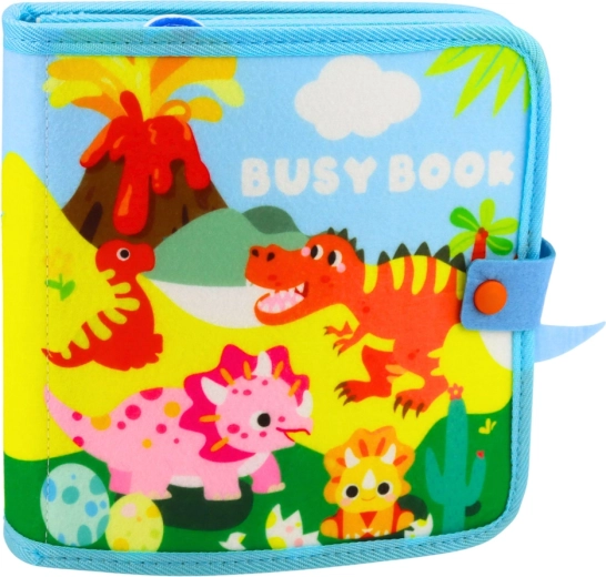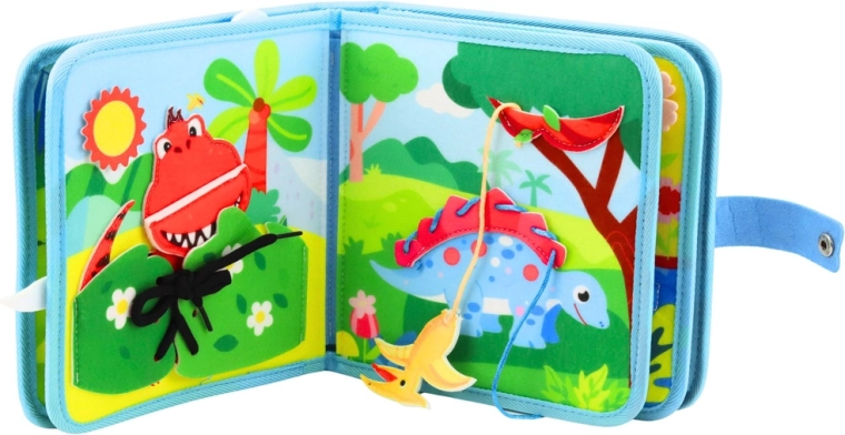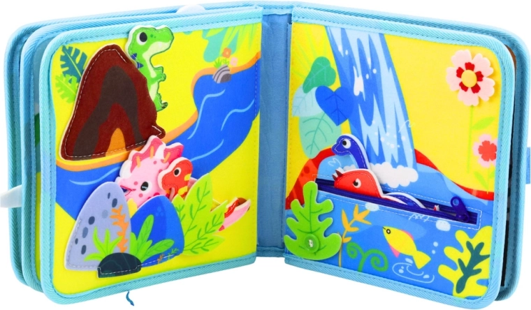 Dzięki temu kolorowemu albumowi aktywności dzieci poznają fascynujący świat dinozaurów – od wulkanów po wodospady. Miękki filc jest przyjemny w dotyku i bezpieczny do codziennej zabawy. Książeczka jest kompaktowa, lekka i dzięki praktycznemu zapięciu idealna w podróży.