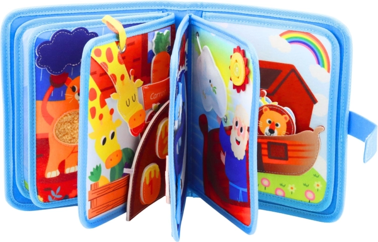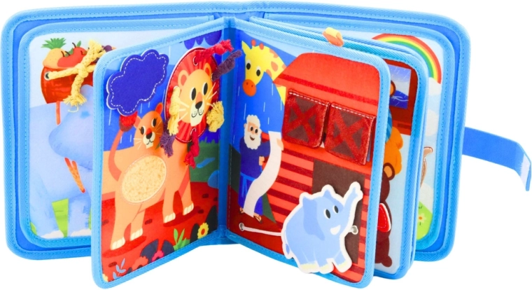 Odkryj zabawną i bezpieczną sensoryczną książeczkę z motywem Arki Noego, która wspiera małą motorykę, koordynację oraz kreatywność. Miękkie filcowe strony z ruchomymi elementami oraz częściami do wyciągania/otwierania zachęcają do dotyku, nauki kolorów i kształtów oraz opowiadania własnych historii – idealna w domu, w przedszkolu i w podróży.