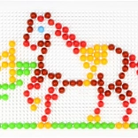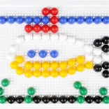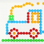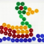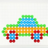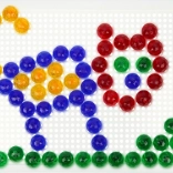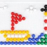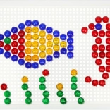 Bez szablonów, z 120 kolorowymi elementami o średnicy 10 mm dzieci tworzą własne obrazki i ćwiczą kreatywność.