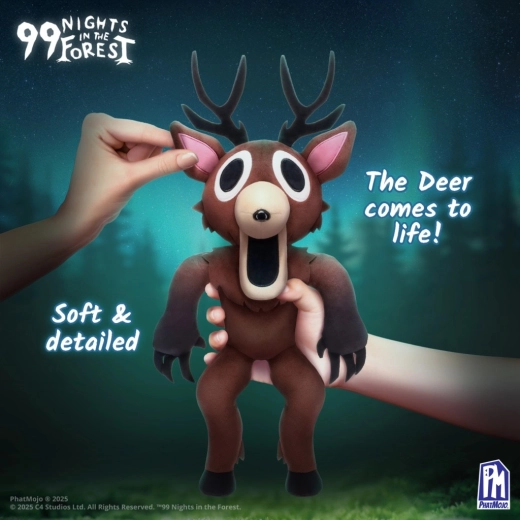 Detalne poroże, wyraziste oczy i staranne szwy wiernie oddają postać Jelenia z gry 99 Nights in the Forest – idealne dla fanów i kolekcjonerów.