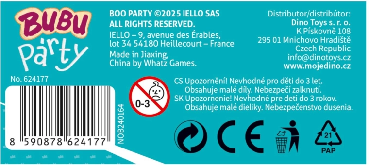 Bubu Party to dynamiczna gra dla dzieci pełna kolorowych kostiumów i uroczych stworków. Dzieci w zabawny sposób trenują w niej pamięć, koncentrację i szybkie podejmowanie decyzji. Dzięki krótkim rundom i prostym zasadom świetnie sprawdza się jako rodzinna gra w domu i w podróży.