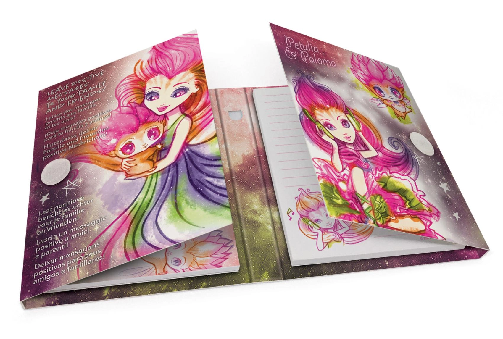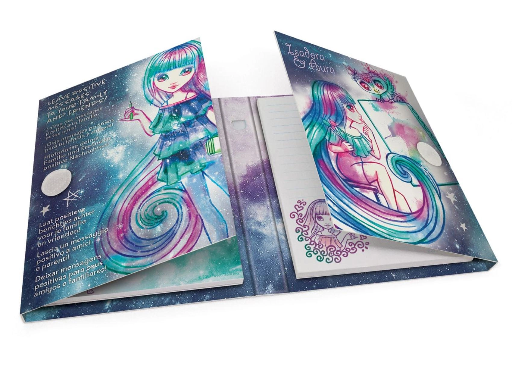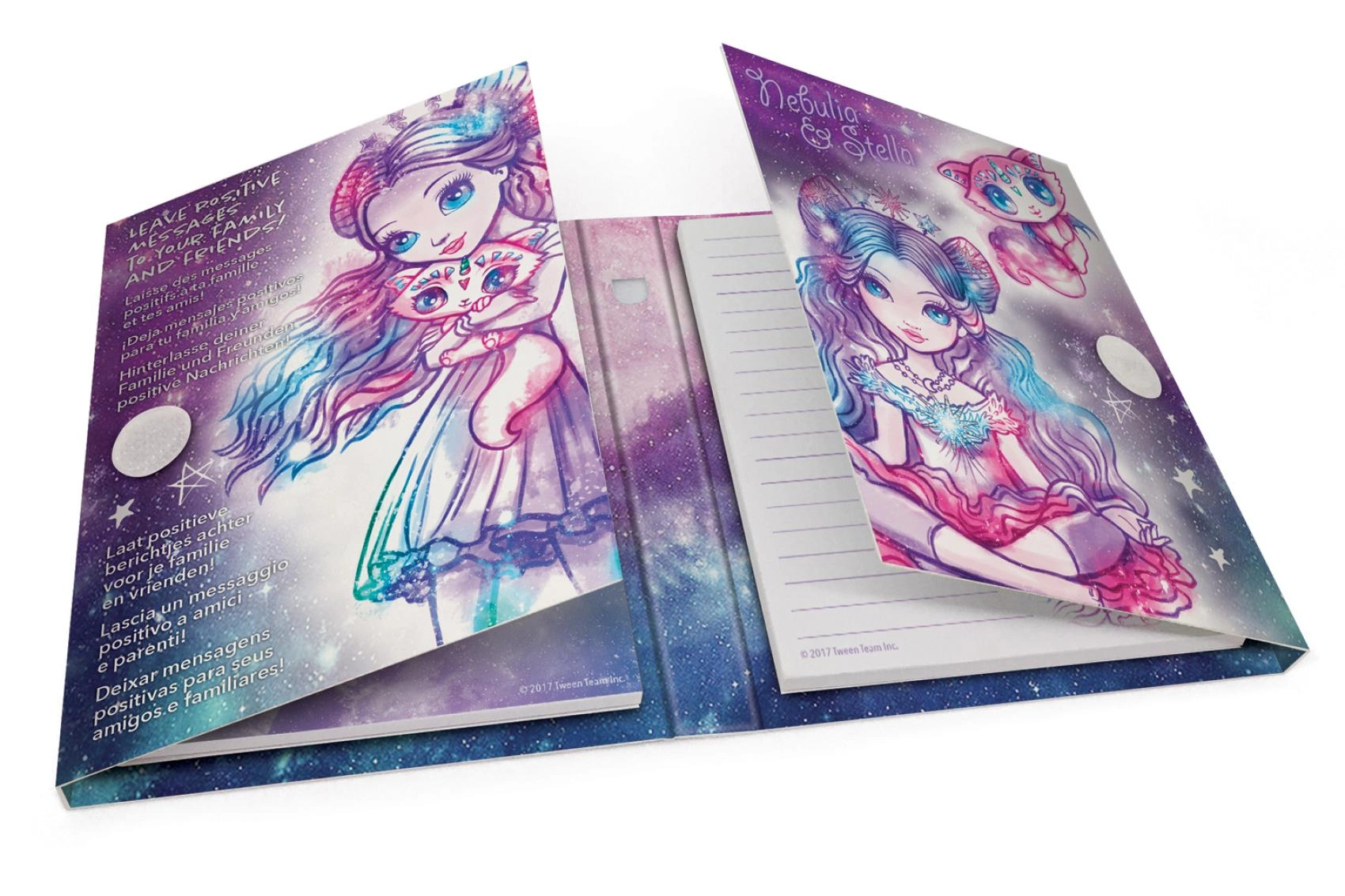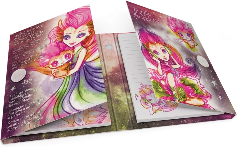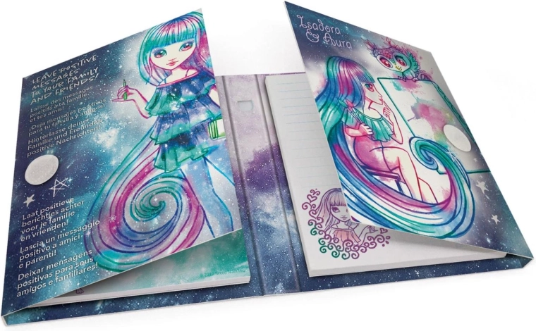 Twarde okładki z kolorowymi ilustracjami i gwiezdnymi motywami zachwycą fanów magicznych galaktyk i rozświetlą każdy wpis.