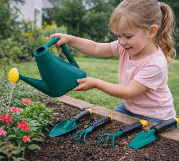 Praktyczna przenośna skrzynka utrzyma wszystko w jednym miejscu – dzieci mogą zabrać swoje narzędzia w dowolne miejsce w ogrodzie i po zabawie szybko posprzątać. Wspólne ogrodnictwo wzmacnia odpowiedzialność i więź z przyrodą.