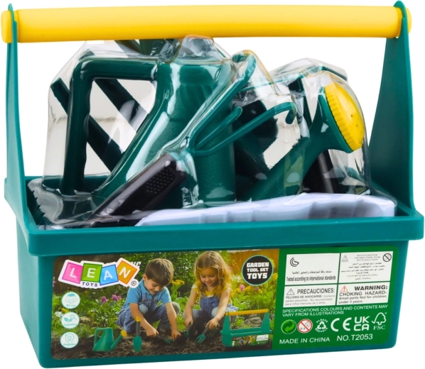 - Kompletny zestaw do zabawy w ogrodnika: konewka, łopatka, grabki, kultywator, motyczka/pazurki, przenośna skrzynka.