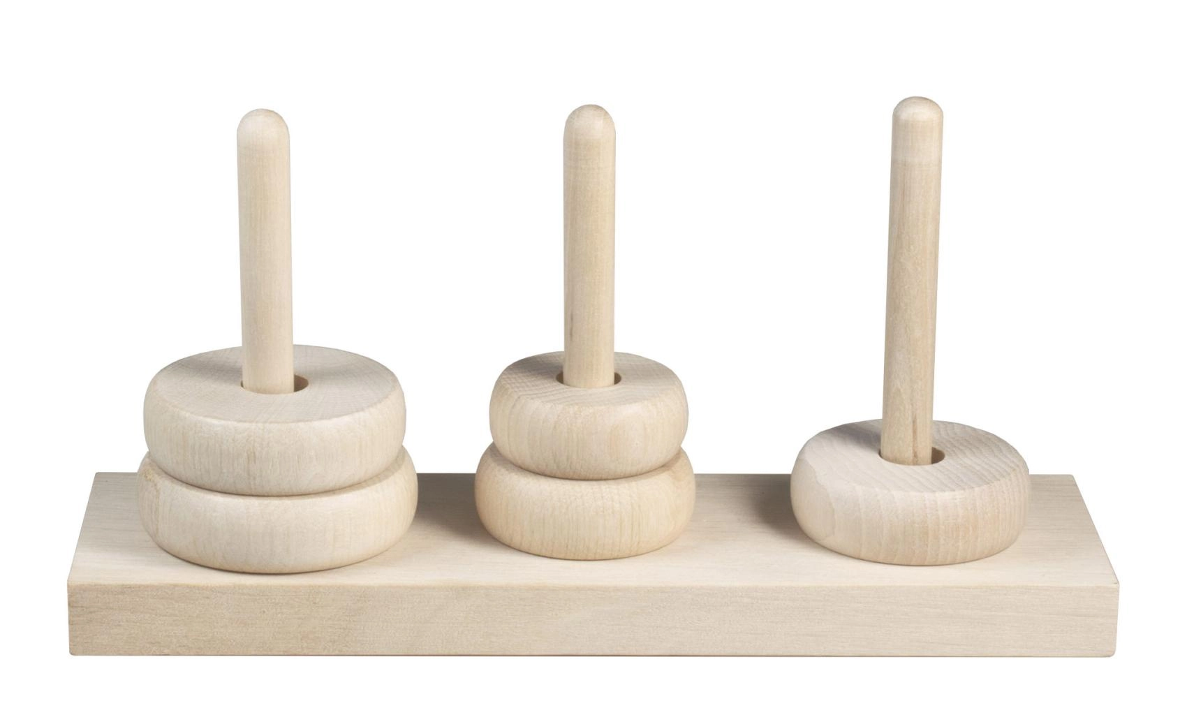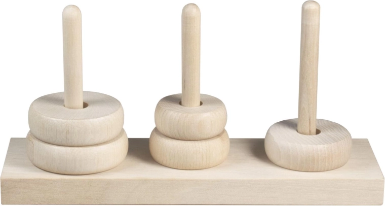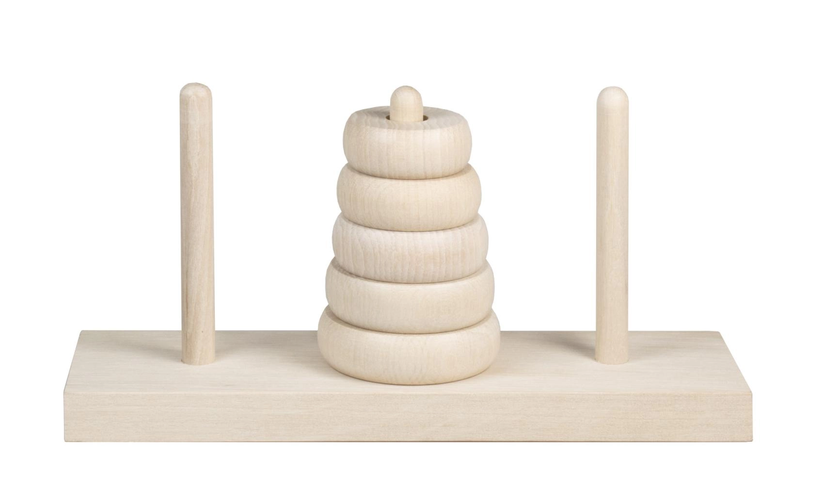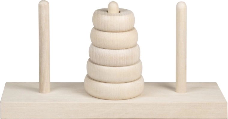 Wieża Hanoi to klasyczna matematyczna łamigłówka z 1883 roku, która bawi i uczy kolejne pokolenia graczy. Celem jest przeniesienie wszystkich krążków z jednego drążka na drugi według prostych zasad – można przenosić tylko jeden krążek naraz, a większy krążek nigdy nie może leżeć na mniejszym. Ta drewniana wersja oferuje naturalny wygląd, solidną podstawę i gładkie krążki dla wygodnej manipulacji.