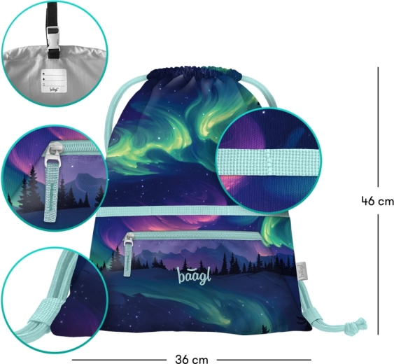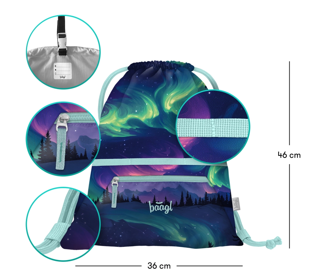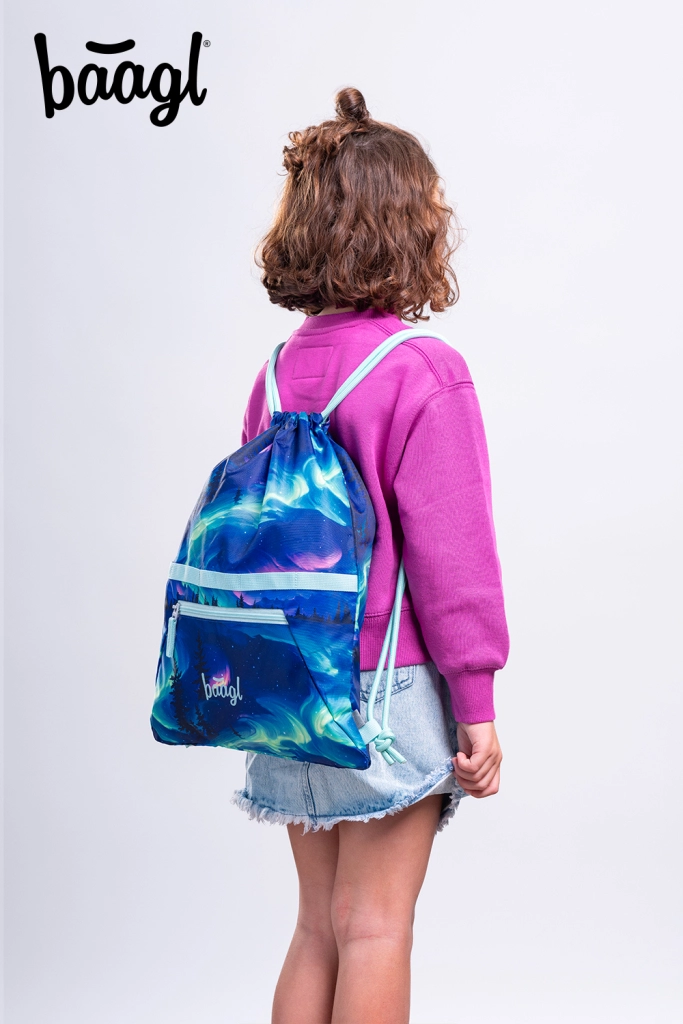 Worek z kieszenią Baagl Aurora GRS to stylowe i funkcjonalne rozwiązanie do codziennego noszenia kapci, akcesoriów sportowych i drobiazgów do szkoły czy w podróży. Przednia kieszeń na suwak bezpiecznie pomieści klucze, pieniądze lub telefon, a wytrzymały, zmywalny materiał zapewnia długą żywotność i łatwą pielęgnację.