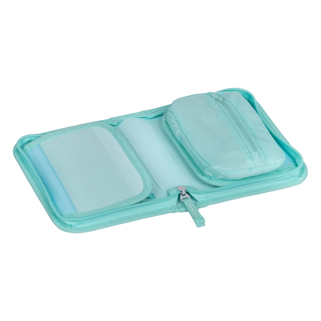 Dwie klapki, mocne gumki oraz kieszonka na drobiazgi utrzymają wszystko dokładnie na swoim miejscu. Rozkładana konstrukcja ułatwia szybkie odnalezienie potrzebnych rzeczy.