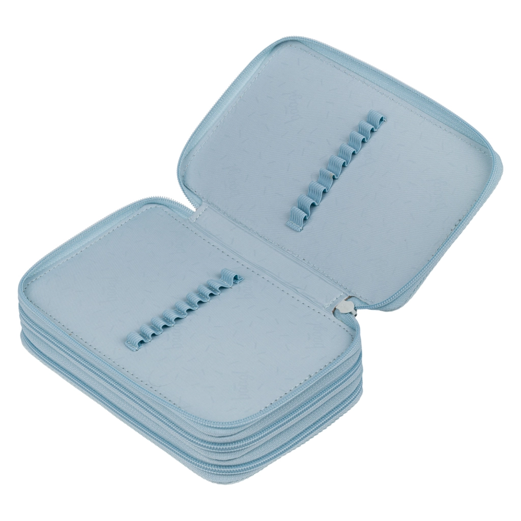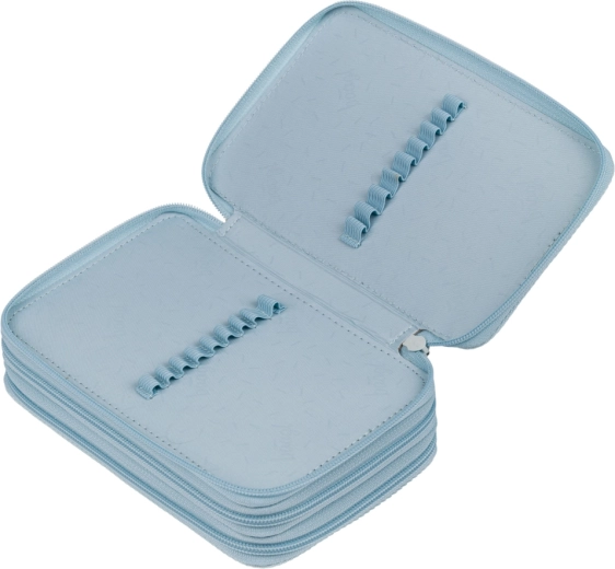 Przemyślane wewnętrzne rozmieszczenie z elastycznymi gumkami bezpiecznie mieści cienkie i grube przybory do pisania – od kredek i flamastrów po długopisy, linijki czy drobne akcesoria. Wzmocniony grzbiet ułatwia zamykanie, zamek dookoła zapewnia bezpieczne przechowywanie zawartości, a zaokrąglone rogi chronią piórnik i jego wyposażenie.