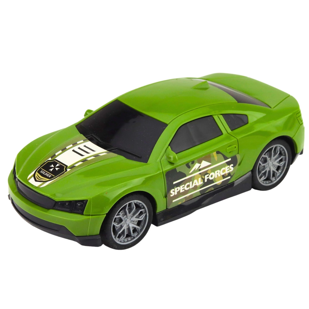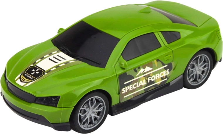 Dziecięcy zestaw wojskowy w zielonym kamuflażu zawiera ciężarówkę z naczepą, helikopter oraz wojskowe auto sportowe. Realistyczne detale, napisy MILITARY oraz efekty świetlne i dźwiękowe w ciągniku zamieniają zabawę w akcję specjalną. Idealny dla dzieci, które kochają operacje specjalne, transport sprzętu i kreatywne scenariusze.