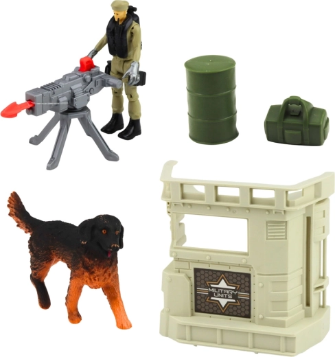 - Żołnierz z wyrzutnią, pies, elementy bazy i militarne dodatki
