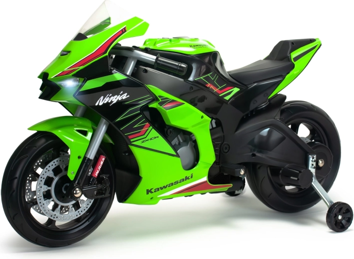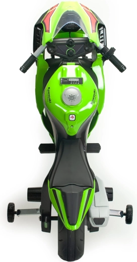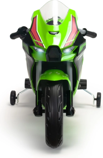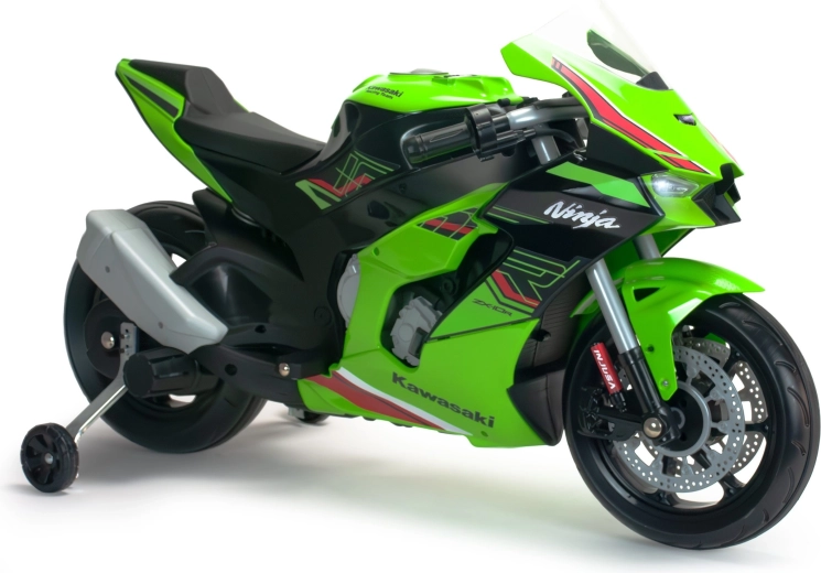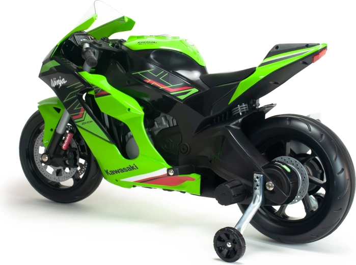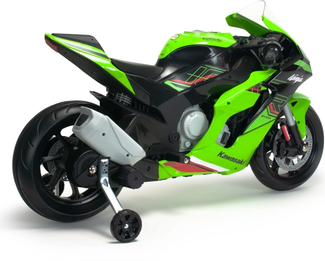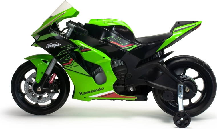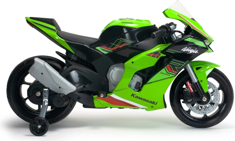 Oficjalna licencja KAWASAKI z wyścigowymi owiewkami, wiatrochronem i detalami hamulców dla maksymalnie wiernego wyglądu i radości małych motocyklistów.