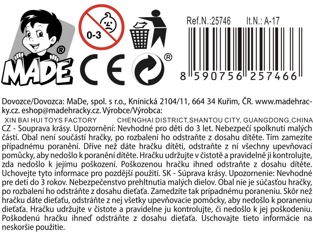 Spraw radość małym elegantkom tym dziecięcym zestawem piękności, idealnym od 3 lat. Kompaktowe opakowanie o wymiarach 14 × 20 × 3 cm, prosty design i jedna wersja kolorystyczna gwarantują łatwe użytkowanie i mnóstwo radości z zabawy.