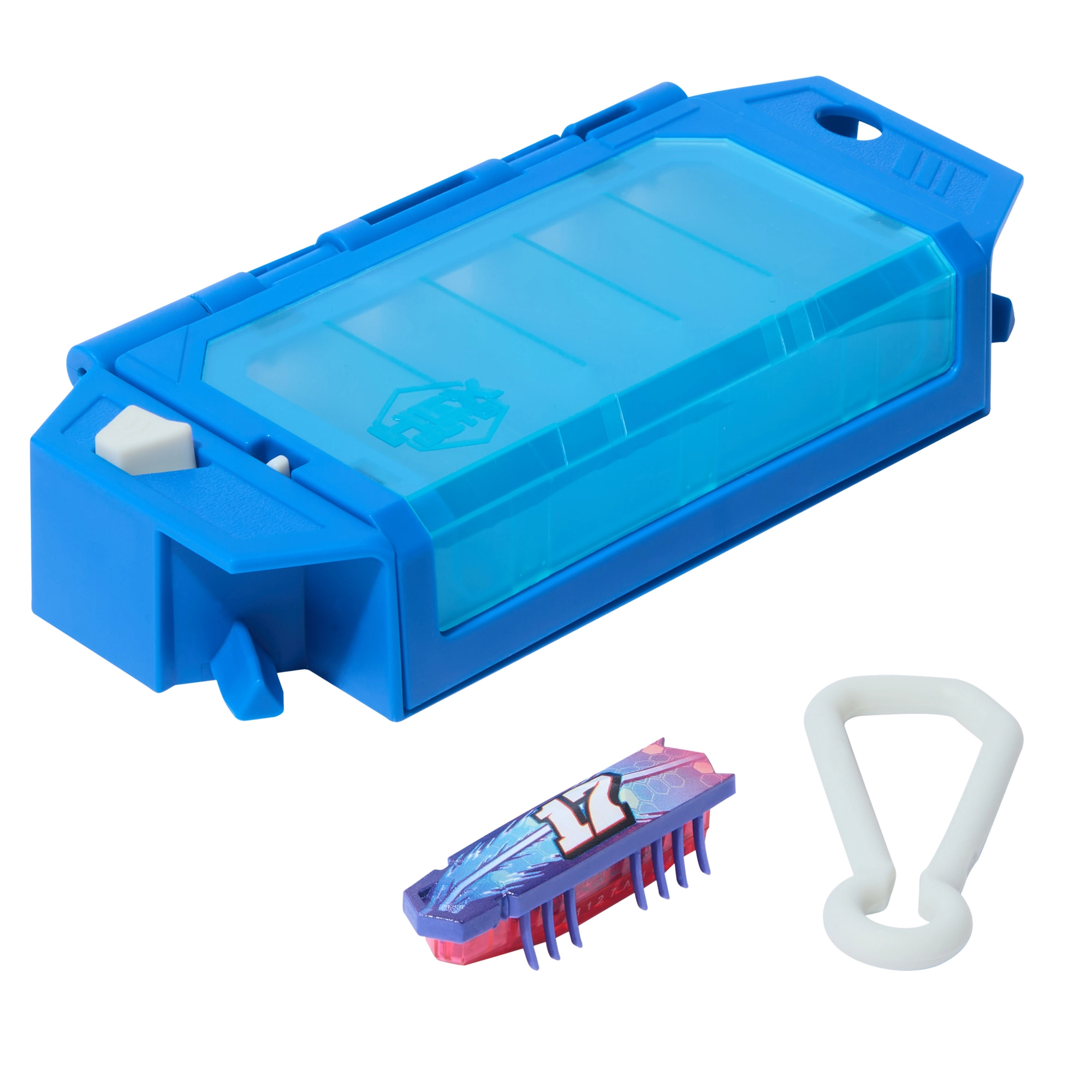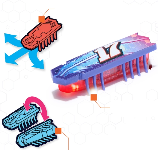 Sprytny On‑The‑Go Launcher służy jednocześnie jako etui i stacja startowa. Pomieści do 6 robotów Nano, a jednym przyciskiem otworzysz drzwiczki i wypuścisz wszystkie naraz – idealne do wyścigów i eksperymentów z trajektoriami. Zestaw można łączyć z innymi kompletami i przeszkodami HEXBOTS Nano, budując własne labirynty i tory wyścigowe.