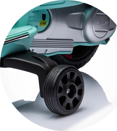 Elektryczny motocykl w stylu VESPA GTS zapewnia dzieciom bezpieczny i atrakcyjny sposób na rozwijanie równowagi oraz motoryki. Dzięki dwóm silnikom (2 × 30 W) rusza płynnie i niezawodnie, a kółka stabilizujące pomagają utrzymać pewność w siodle. Przednie i tylne oświetlenie LED zwiększa widoczność i nadaje motocyklowi autentyczny wygląd.