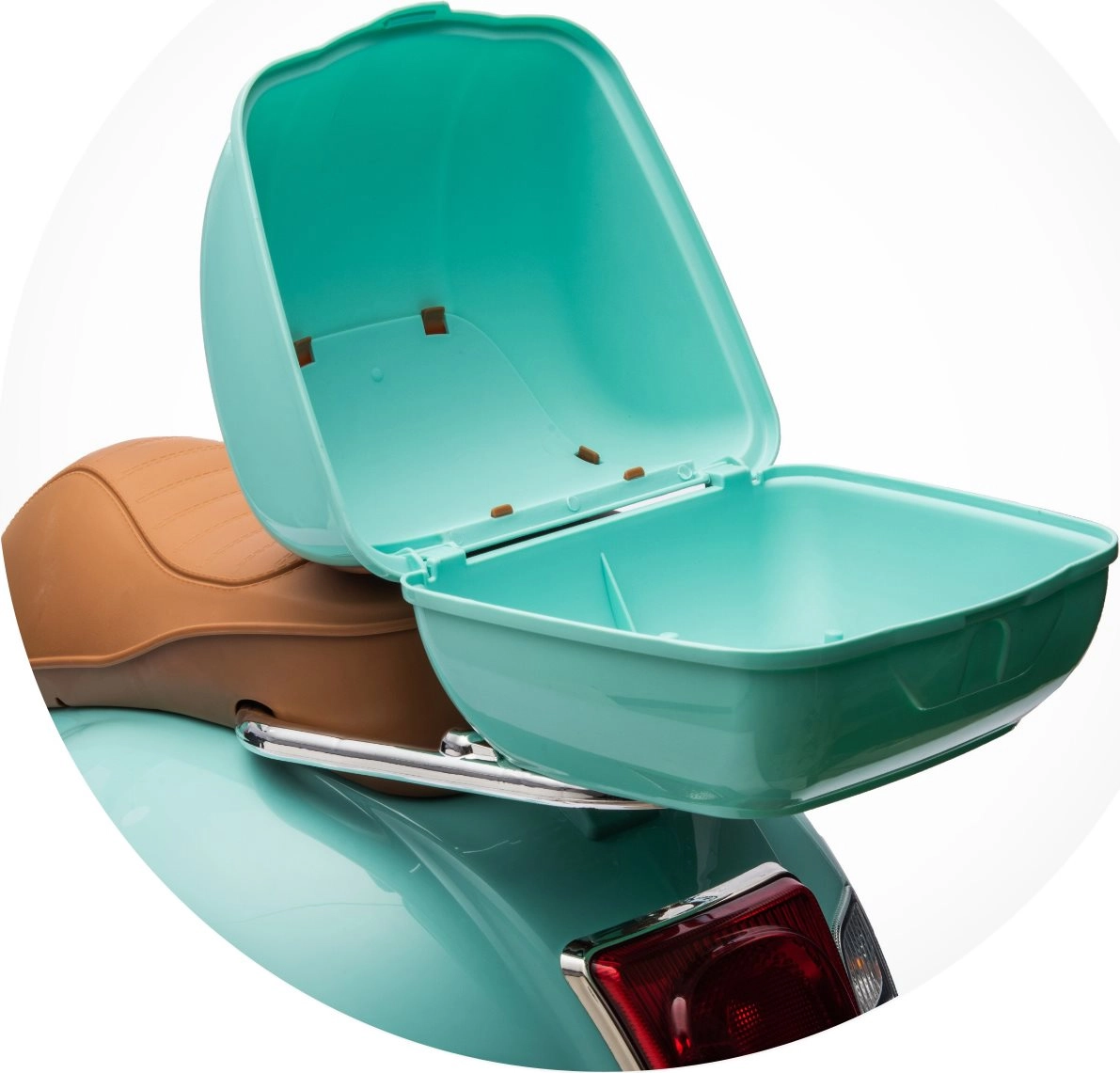 - Miętowy/turkusowy z brązowym siedzeniem