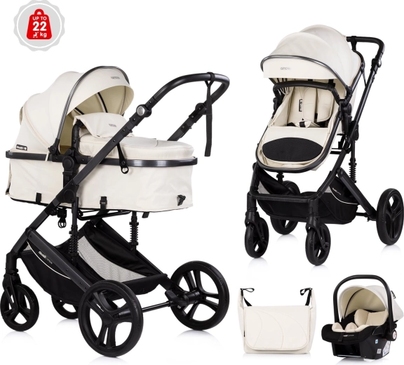 Elegancki wózek kombinowany 2w1 dla noworodków aż do 22 kg łączy w sobie głęboką gondolę i siedzisko spacerowe w jednym. Oferuje lekką ramę z amortyzacją, duże koła dla płynnej jazdy, obracane siedzisko przodem lub tyłem do kierunku jazdy, regulowaną rączkę oraz pojemny kosz. Spełnia normy EN1888-1/2 dla bezpieczeństwa i wygody podczas codziennych spacerów.