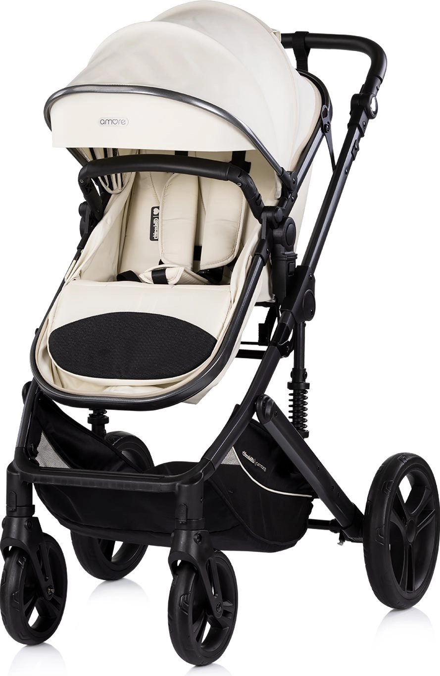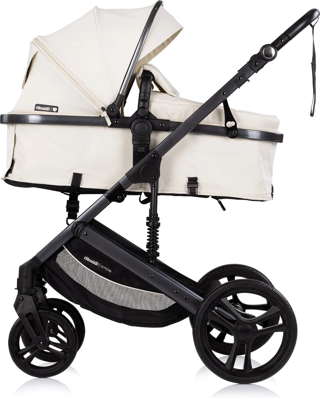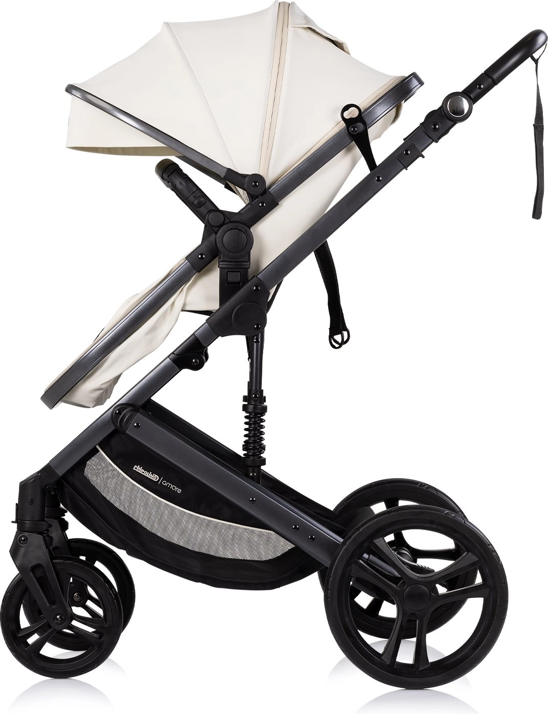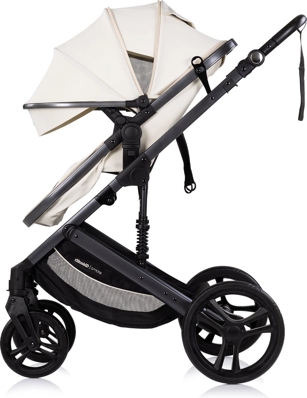 Chipolino Amore 2w1 w odcieniu Cashmere to wszechstronny wózek, który łatwo przełączysz z wersji spacerowej na głęboką dla noworodka. Dzięki amortyzowanej ramie i dużym terenowym kołom zapewnia płynną i komfortową jazdę w mieście i w lżejszym terenie. Regulowana budka z osłoną przeciwsłoneczną chroni dziecko, a 5‑punktowe pasy z wyściółką i odpinany pałąk zwiększają bezpieczeństwo.