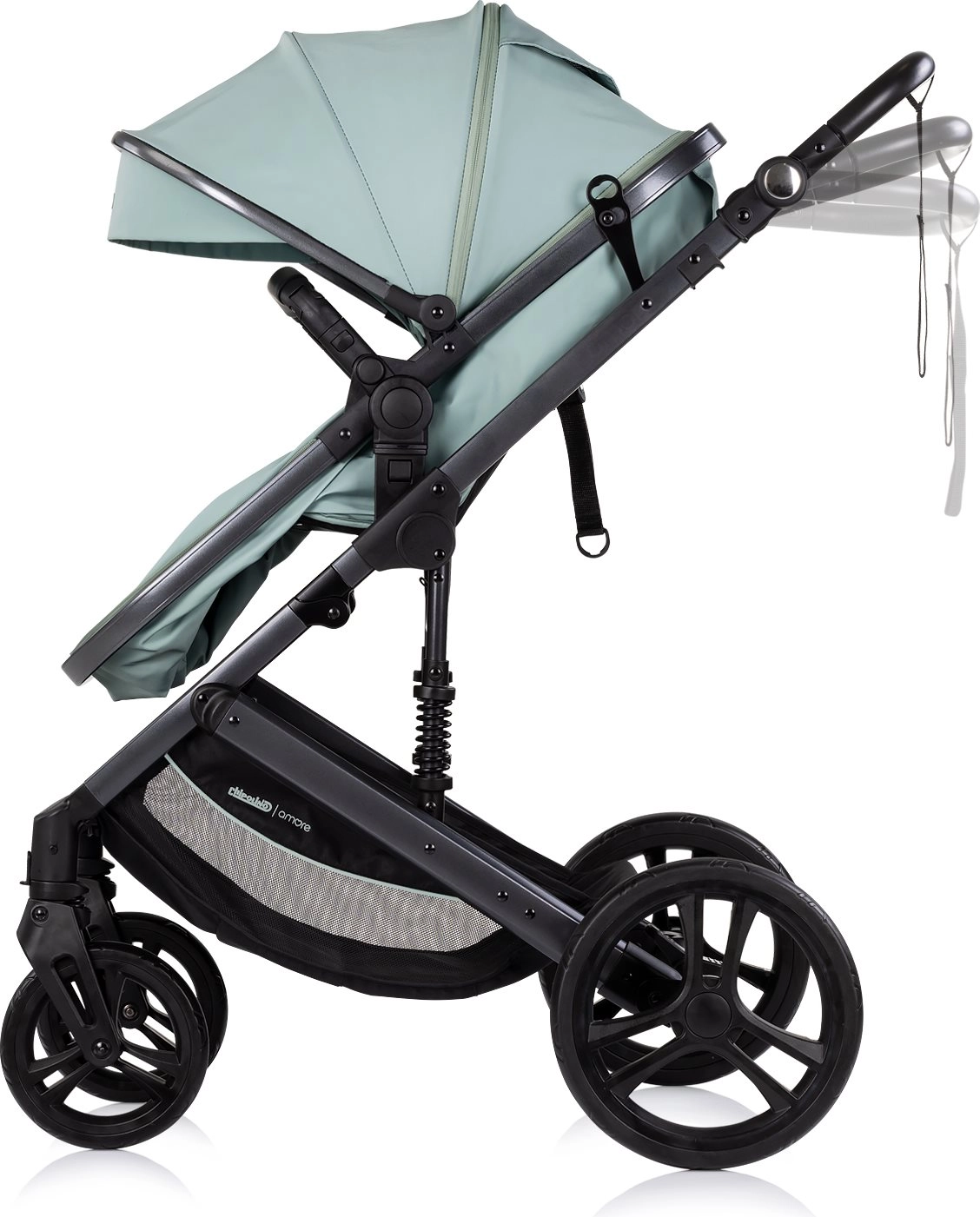 Elegancki wózek 2w1 CHIPOLINO AMORE w kolorze Matcha łączy głęboką gondolę i siedzisko spacerowe w jednym. Oferuje lekką ramę z wbudowanym zawieszeniem, obracane siedzisko przodem i tyłem do kierunku jazdy, regulowane oparcie oraz pojemny kosz. Bezpieczeństwo zapewnia 5‑punktowa uprząż i niezawodny hamulec.