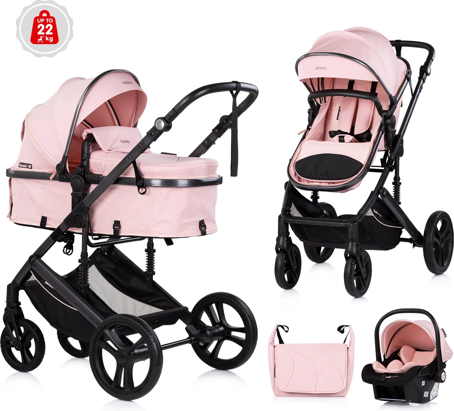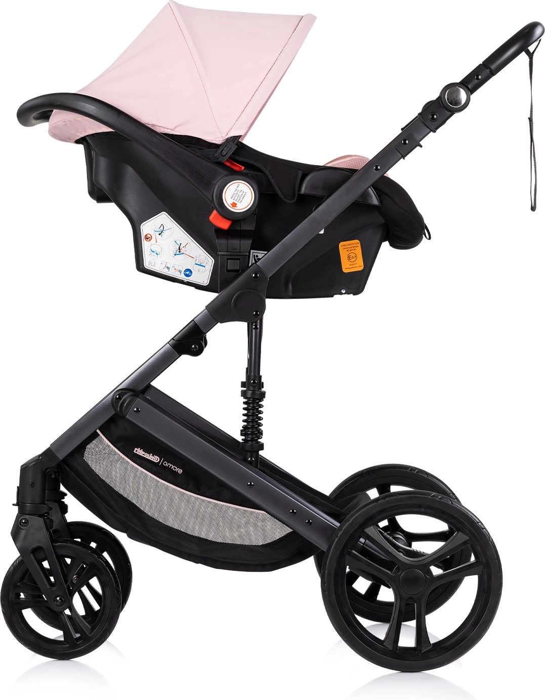 Stylowy wózek łączony CHIPOLINO AMORE 2w1 w odcieniu Powder Pink oferuje głęboką gondolę i siedzisko spacerowe w jednym. Dzięki lekkiej konstrukcji, amortyzowanej ramie i dużym kołom poradzi sobie w mieście i na trudniejszym terenie. O komfort i bezpieczeństwo dbają 5‑punktowe pasy, regulowane oparcie w 3 pozycjach, dwukierunkowe siedzisko oraz przestronny daszek z osłoną przeciwsłoneczną. Zatwierdzony zgodnie z EN1888-1 i EN1888-2.