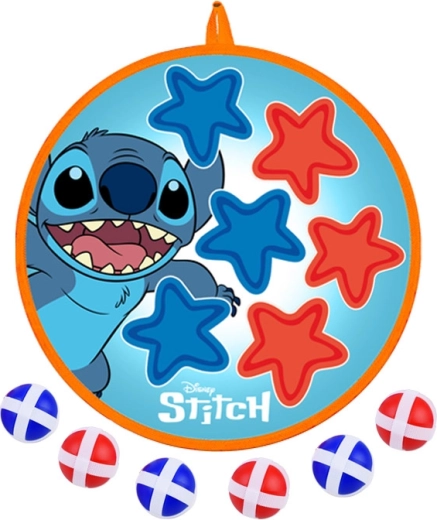 Zabawna i bezpieczna gra dla dzieci z motywem STITCH: dwustronna tarcza na rzep o średnicy 36 cm oraz 6 lekkich piłeczek (4 cm). Wspiera koordynację ręka–oko, celność i aktywny ruch w domu i na zewnątrz. Miękkie piłeczki łatwo przyczepiają się do powierzchni, a tarczę można zawiesić na ścianie, drzwiach lub w ogrodzie.