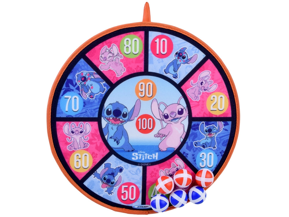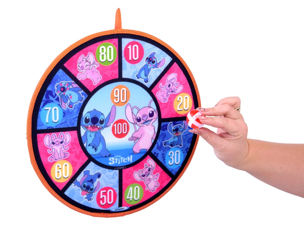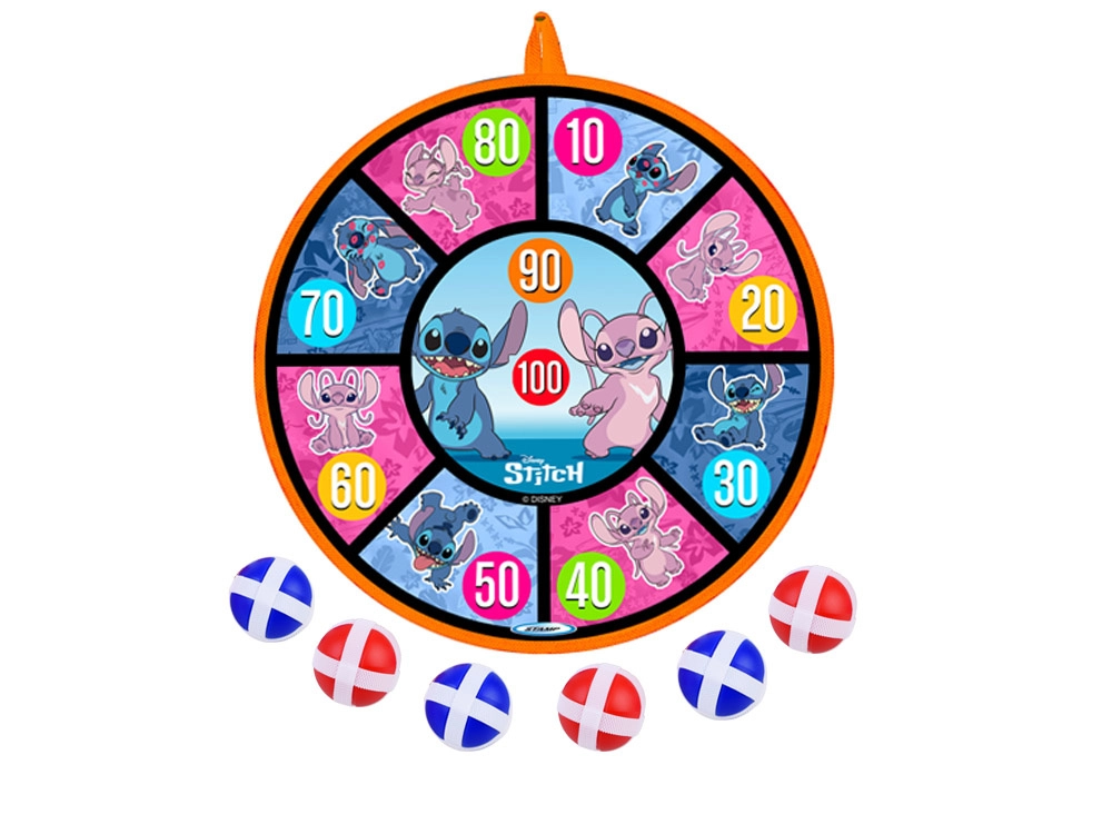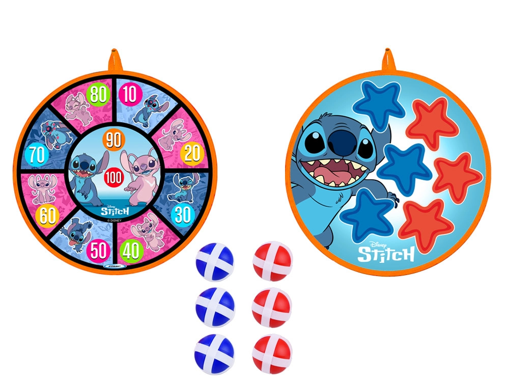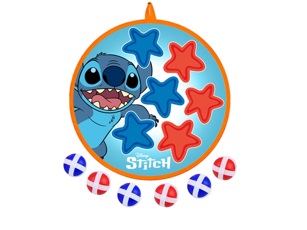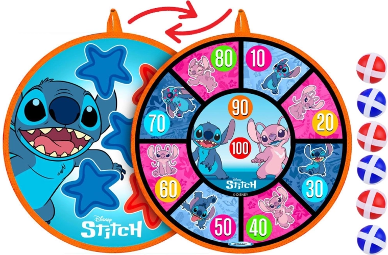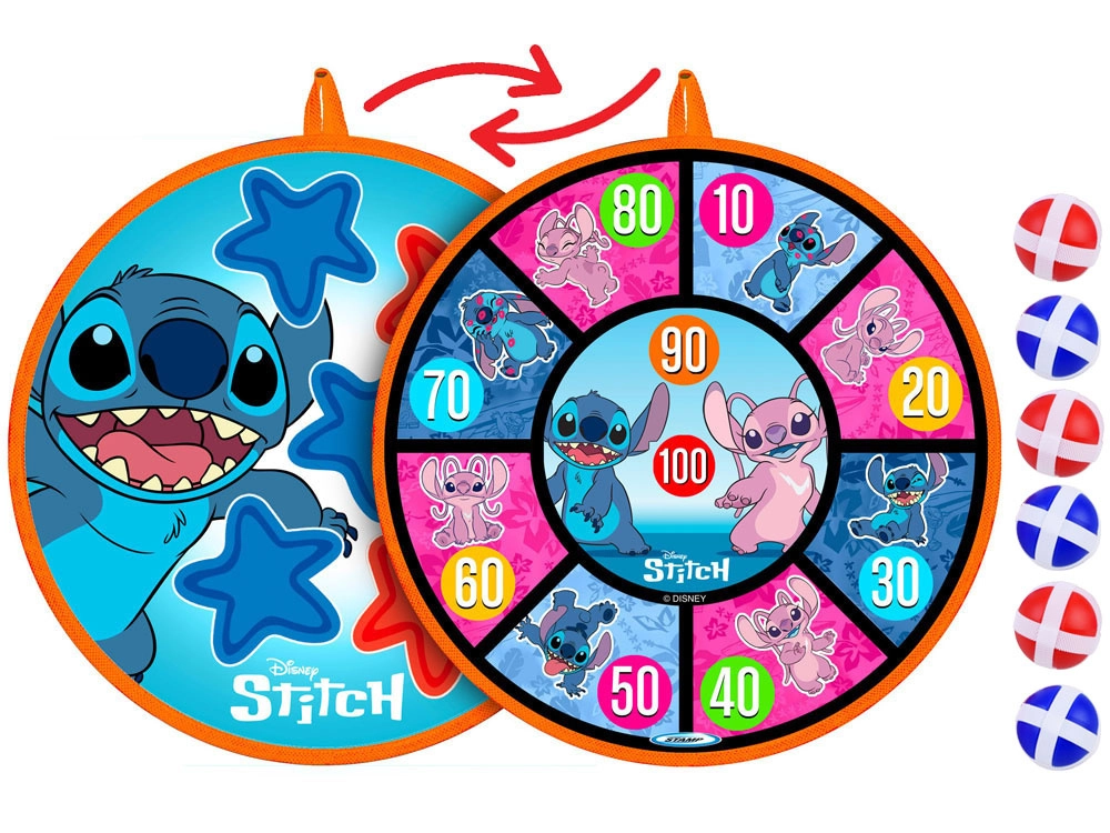 Dwustronna tarcza na rzep ze stylową grafiką STITCH zapewnia świetną zabawę ruchową dla dzieci w różnym wieku. Dzięki miękkiej powierzchni i lekkim piłeczkom gra jest bezpieczna i nadaje się do wnętrz oraz na świeże powietrze. Tarcza łatwo się wiesza i w kilka chwil jest gotowa do zawodów oraz treningu celności.