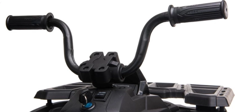 Komfort zapewniają siodło z oparciem, ergonomiczna antypoślizgowa kierownica oraz szerokie podnóżki dla pewnej pozycji. Przedni zderzak chroni karoserię i nadaje quadzie wytrzymały wygląd. Idealny wybór dla dzieci, które kochają akcję i styl.