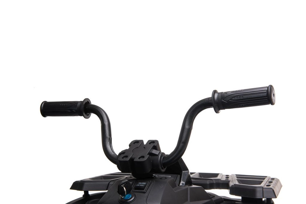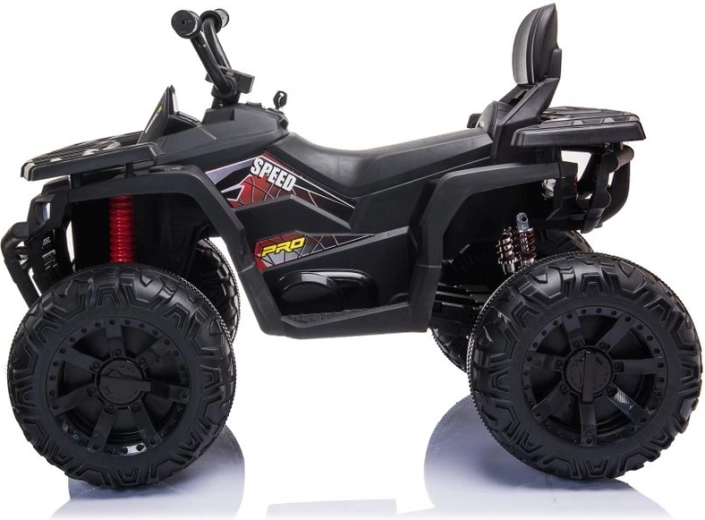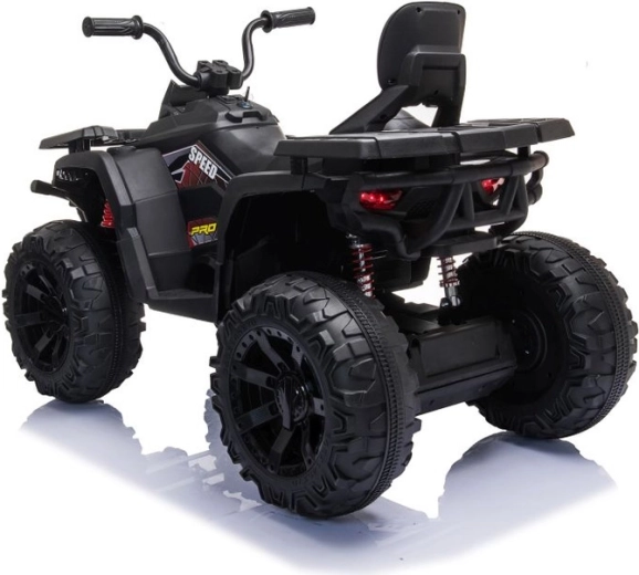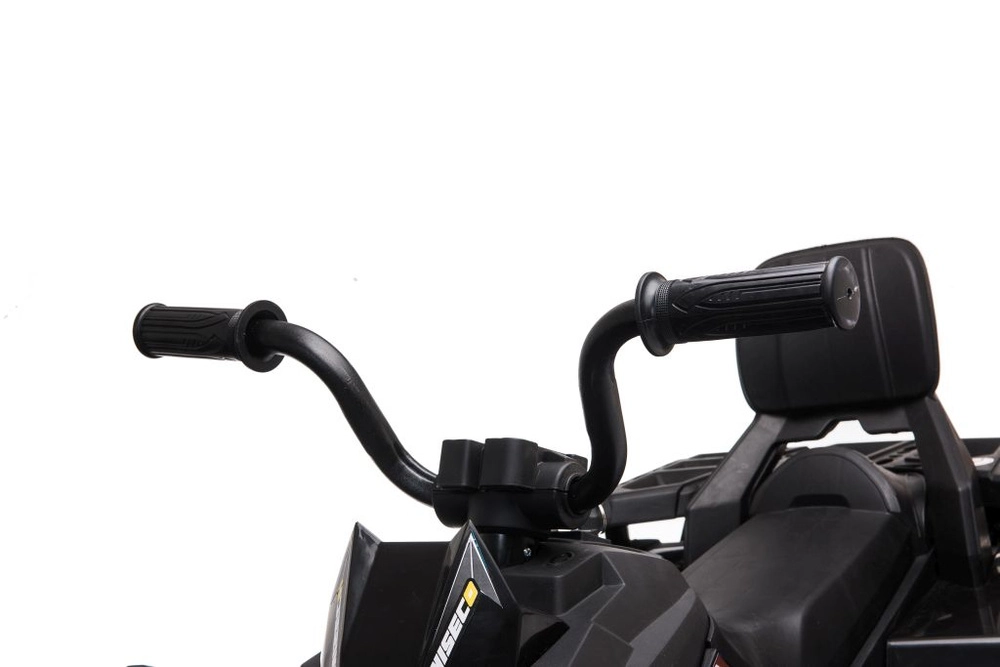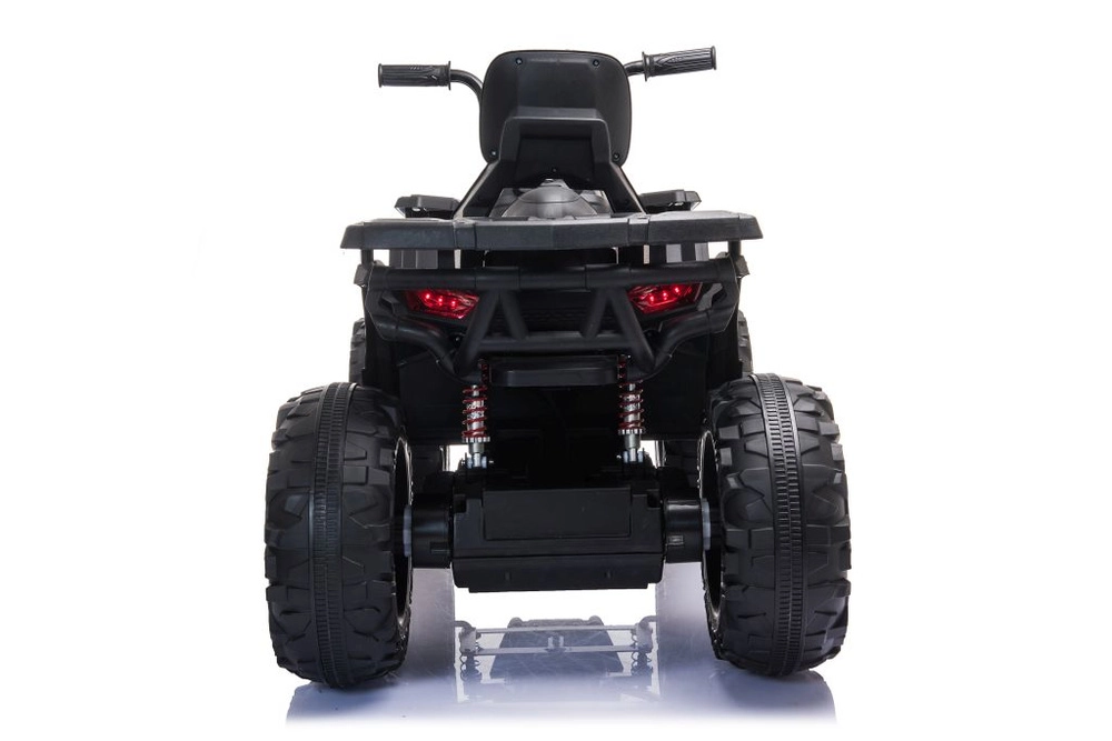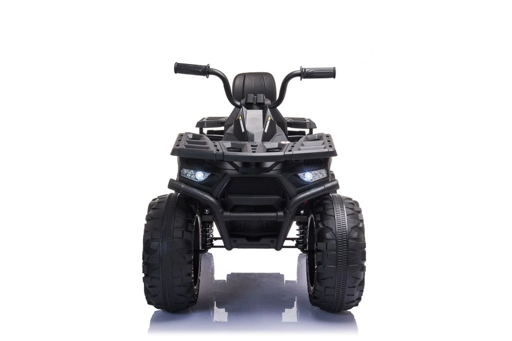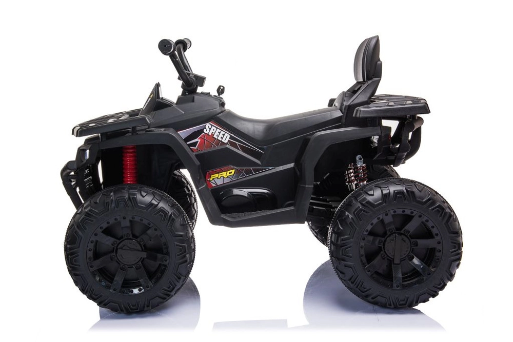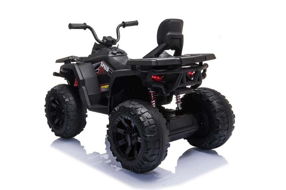 Wytrzymały dziecięcy elektryczny quad w eleganckim czarnym kolorze oferuje szerokie terenowe opony, stabilne czterokołowe podwozie oraz świecące reflektory LED dla realistycznej jazdy. Idealny dla małych odkrywców – wygodne siodło z oparciem, bezpieczne sterowanie i mocny terenowy wygląd ucieszą każde dziecko.
