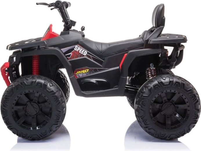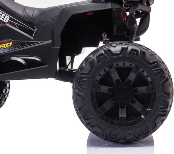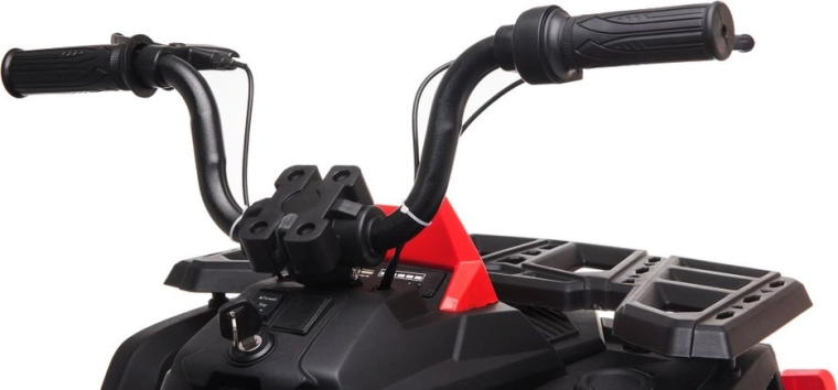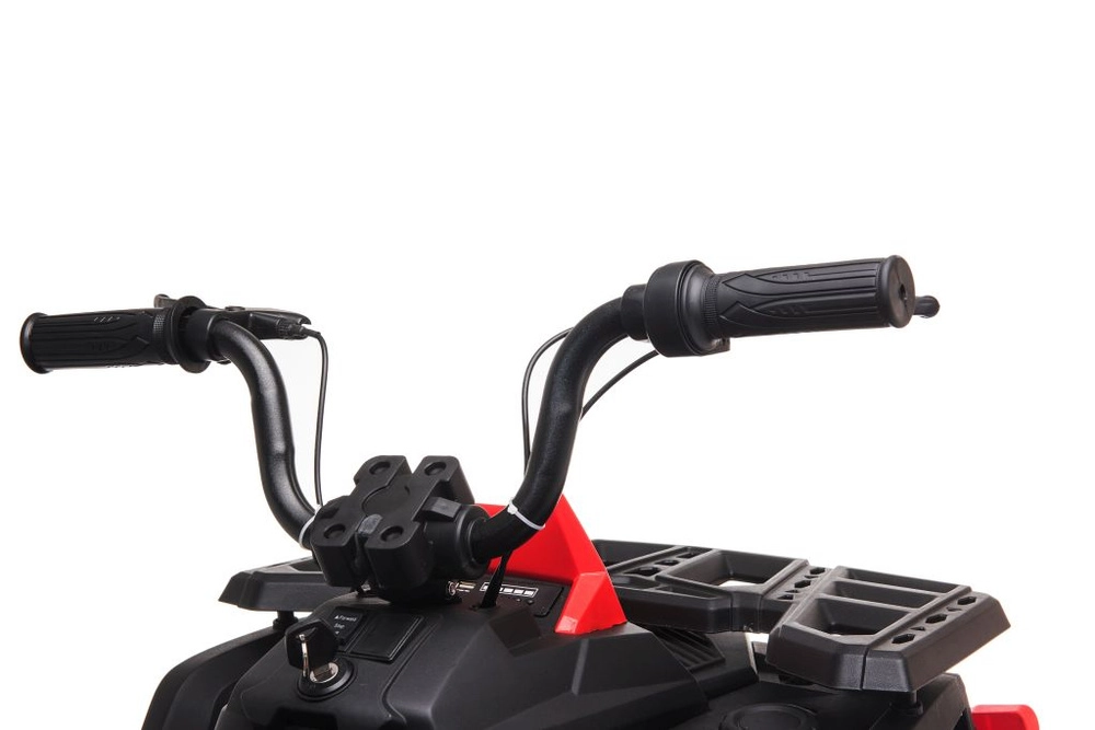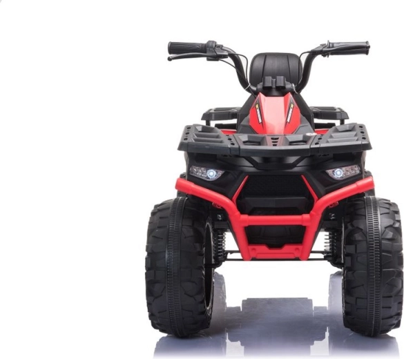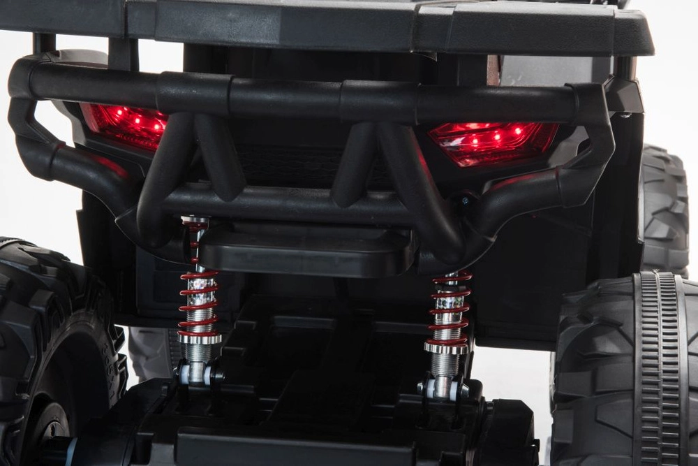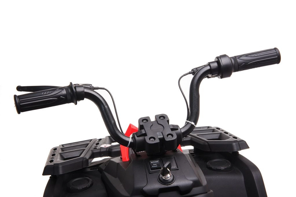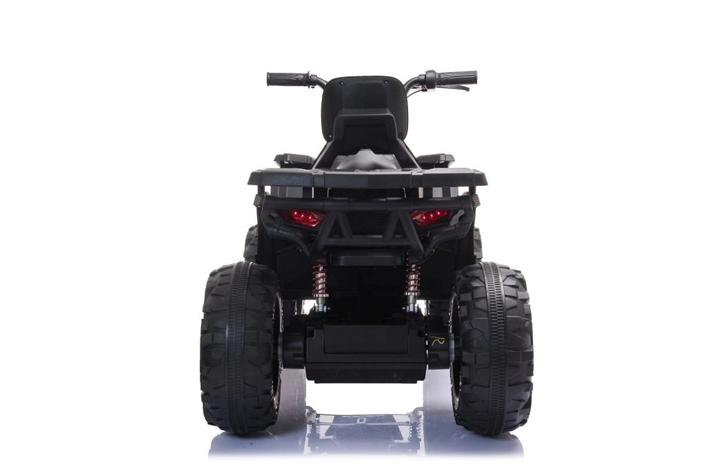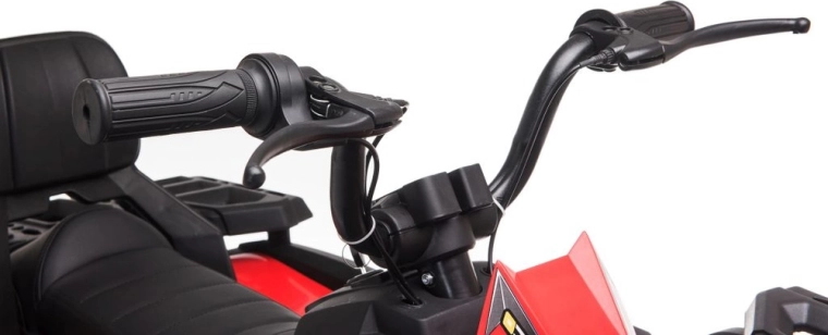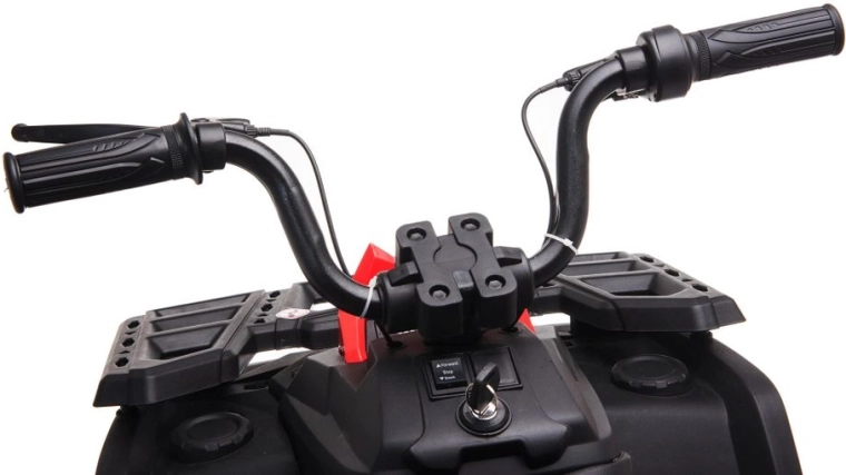 Solidny dziecięcy elektryczny czterokołowy motorek z szerokimi terenowymi kołami, stabilną konstrukcją i realistycznymi światłami LED zapewnia mnóstwo zabawy w ogrodzie i na twardej nawierzchni. Proste sterowanie kierownicą, wygodne siedzenie z oparciem oraz przełącznik przód/stop/tył sprawiają, że jazda jest bezpieczna i przyjemna.
