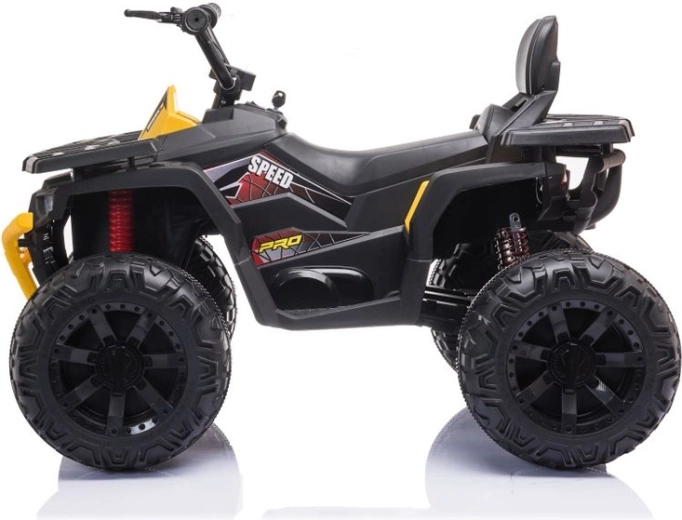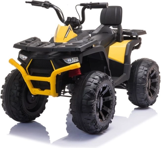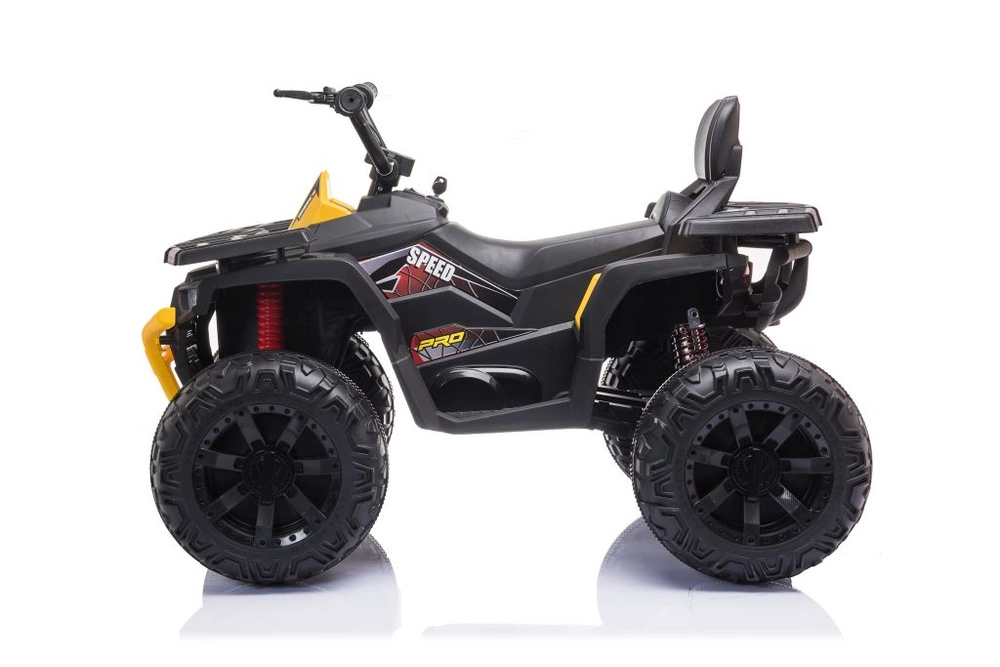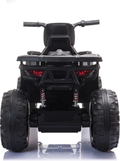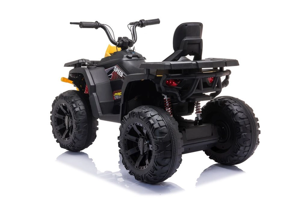 Realistyczne detale, takie jak przednie i tylne światła, sprężyny tylnego zawieszenia oraz tylny bagażnik, nadają quadzie prawdziwy off-roadowy charakter. Napęd elektryczny jest cichy i łatwy w obsłudze, idealny do codziennej zabawy i rozwoju zdolności motorycznych.