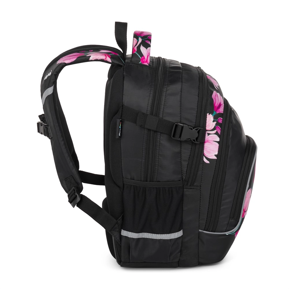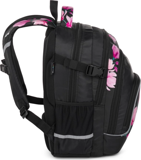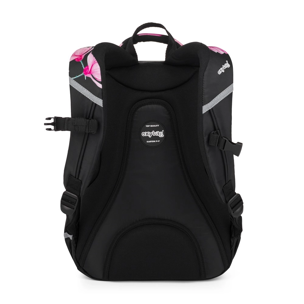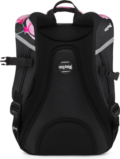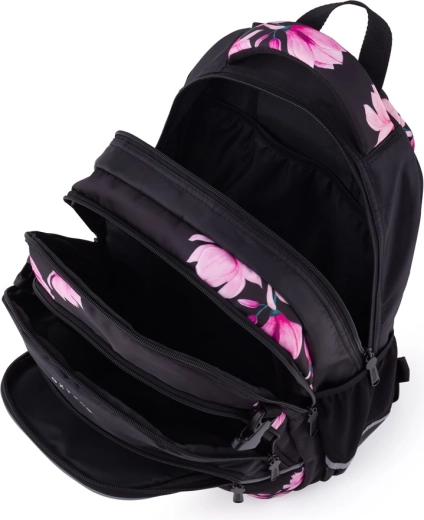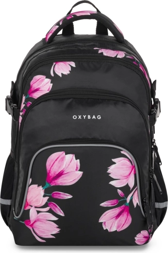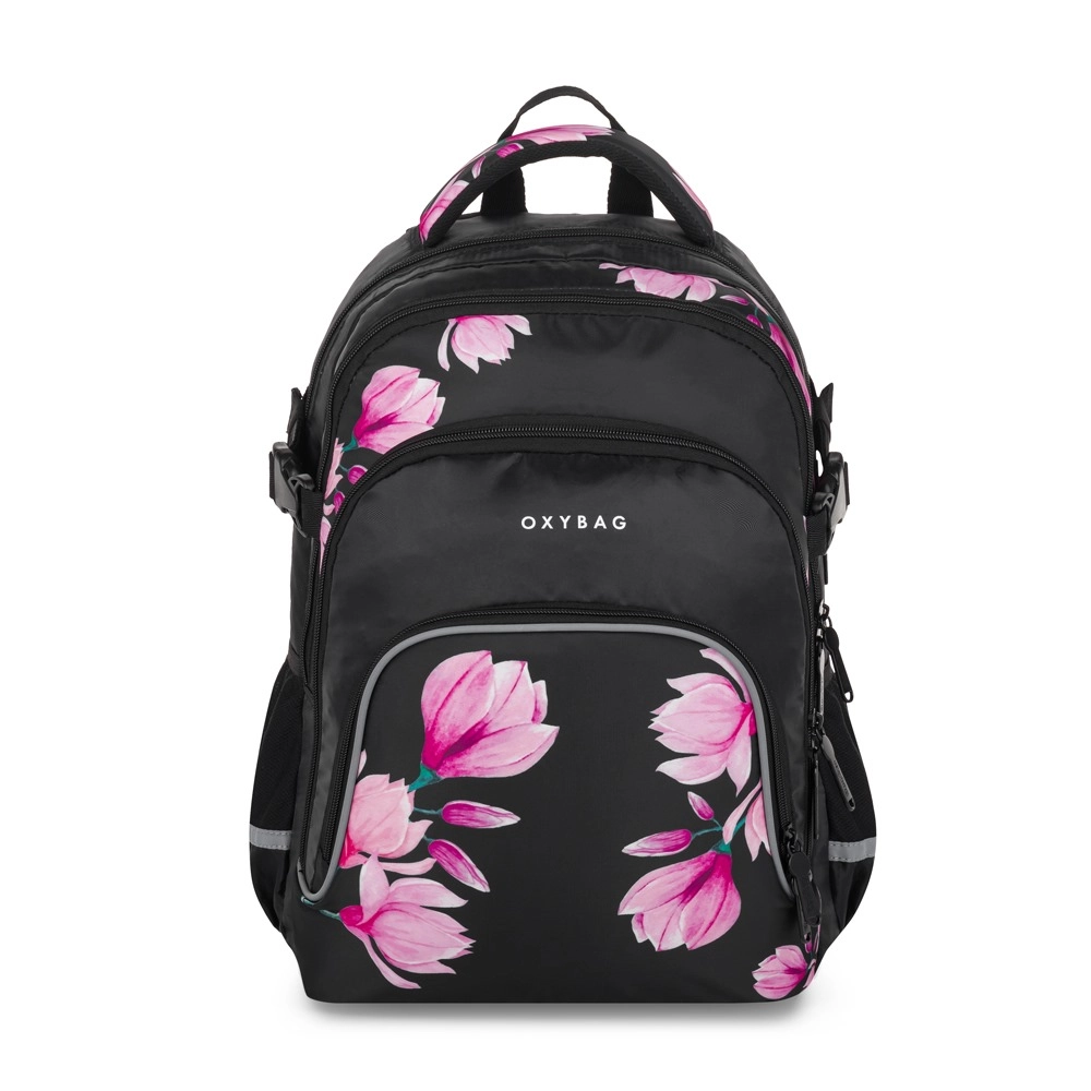 OXYBAG Scooler Magnolie to niezawodny towarzysz do szkoły i na czas wolny. Trzy przestronne komory mieszczą podręczniki, zeszyty i śniadanie, przednie kieszenie z organizerem pomagają utrzymać porządek w drobiazgach, a wewnętrzna przegroda zabezpiecza laptop. Boczna kieszeń jest idealna na butelkę z napojem, a praktyczny uchwyt na klucze lub czip oszczędza czas przy codziennym szukaniu.
