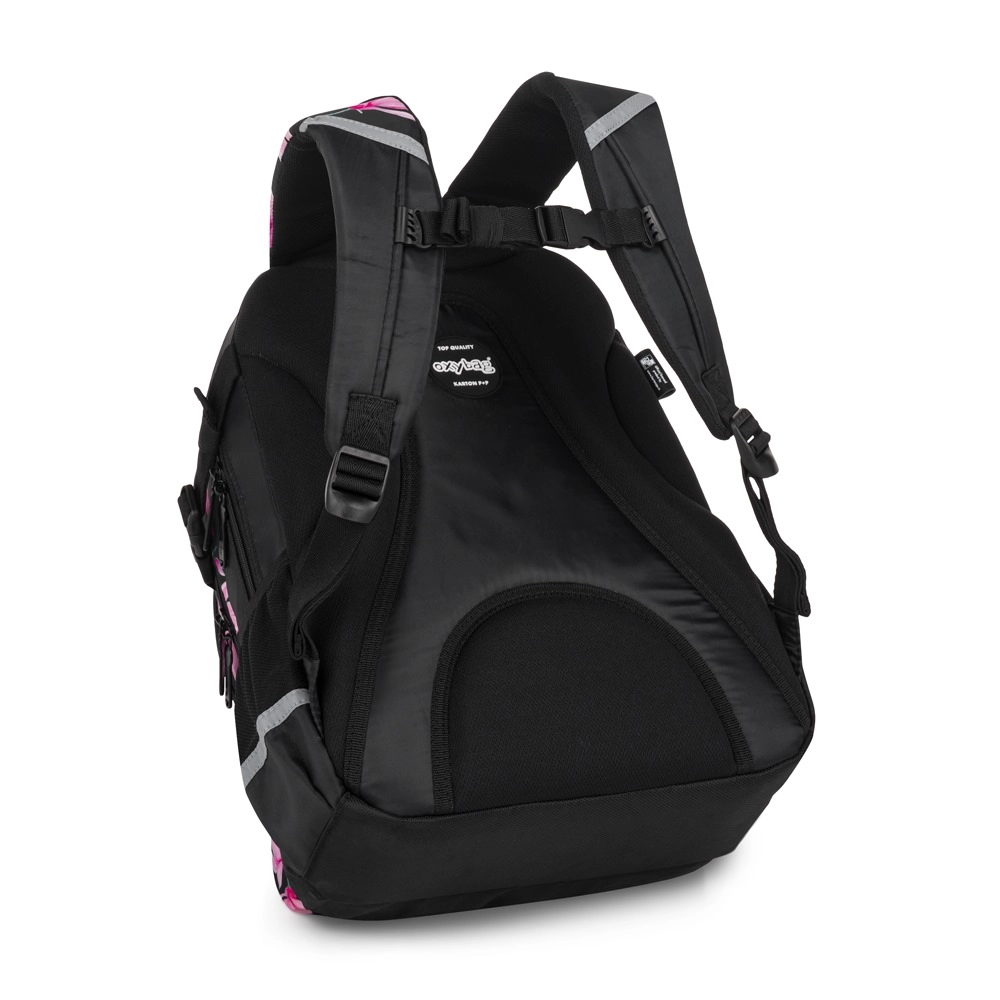 Dla wygodnego noszenia plecak wyposażono w anatomicznie ukształtowane, oddychające plecy, regulowane szelki oraz pasek piersiowy, dzięki czemu świetnie leży nawet podczas dłuższej drogi. Wzmocnione, wodoodporne dno chroni zawartość przed wilgocią i zabrudzeniami, a elementy odblaskowe zwiększają widoczność dzieci w drodze do i ze szkoły.