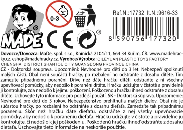 Ten zestaw lekarski dla dzieci od 3 lat pobudza wyobraźnię i rozwija umiejętności społeczne. Zawiera 2 rodzaje narzędzi lekarskich, jest wykonany z wysokiej jakości plastiku, a dzięki kompaktowym wymiarom 17,5 × 15 × 4 cm łatwo go przenosić. Nie wymaga baterii – zabawa zaczyna się od razu po wyjęciu z opakowania.
