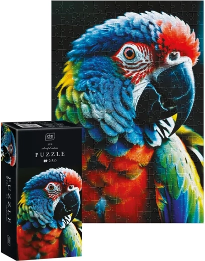 Zrelaksuj się i trenuj koncentrację z barwnym motywem papugi. Puzzle z 250 elementami oferują idealną zabawę dla dzieci i dorosłych, a po ułożeniu mają wymiary ok. 48 × 33 cm.
