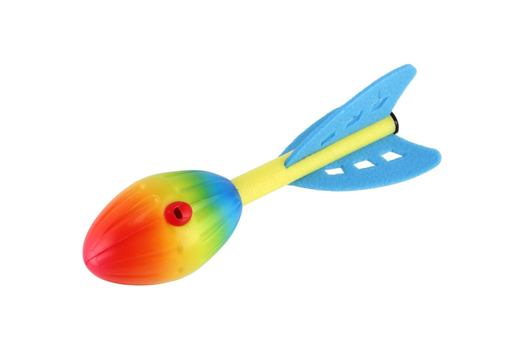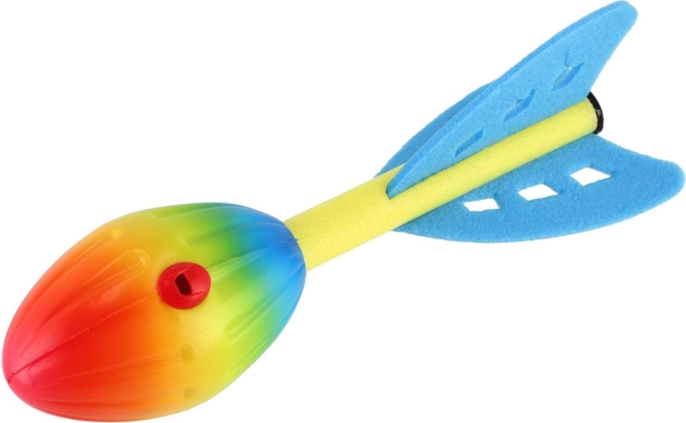 Rakieta podczas lotu gwiżdże, co motywuje dzieci do kolejnych rzutów oraz zawodów na odległość i celność.