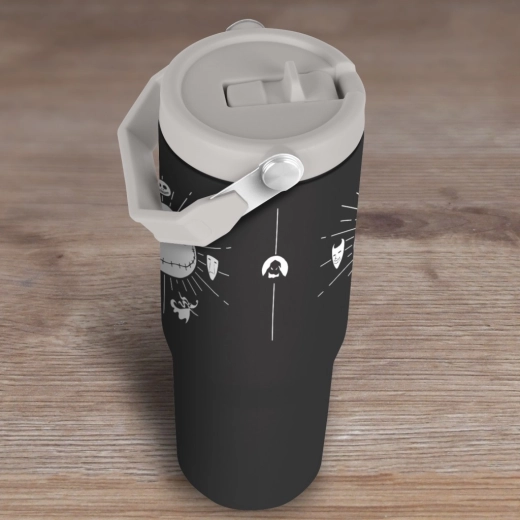 Ulubiony motyw JACKA SKELLINGTONA i ikoniczne symbole z filmu nadają kubkowi wyrazisty wygląd, który przyciąga wzrok od pierwszego spojrzenia. Ergonomiczny kształt i profilowany korpus zapewniają pewny chwyt, a składane ucho w pokrywce ułatwia przenoszenie w dłoni, plecaku i samochodzie.