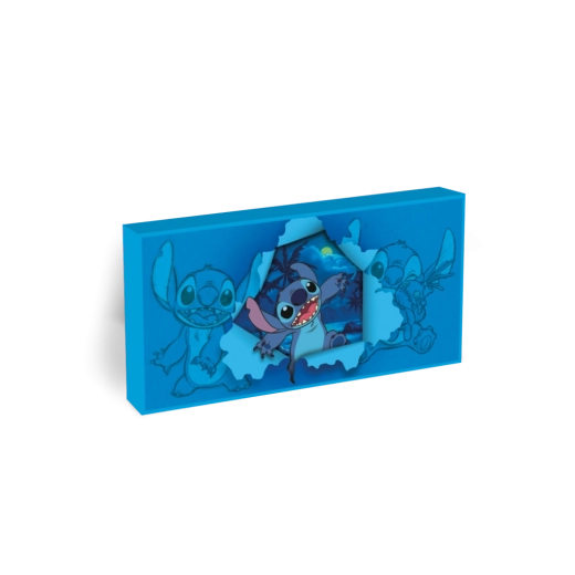 Dzięki lekkiej i wytrzymałej konstrukcji obraz łatwo zawiesisz na ścianie lub postawisz na półce. Jest idealny jako lampka nocna, kolekcjonerska dekoracja oraz oryginalny prezent dla miłośników Lilo & Stitch.