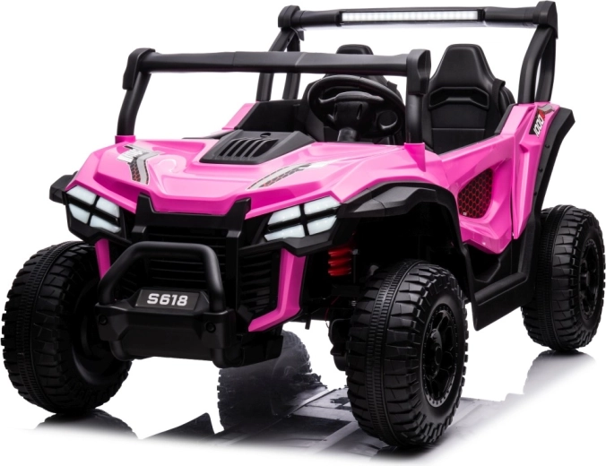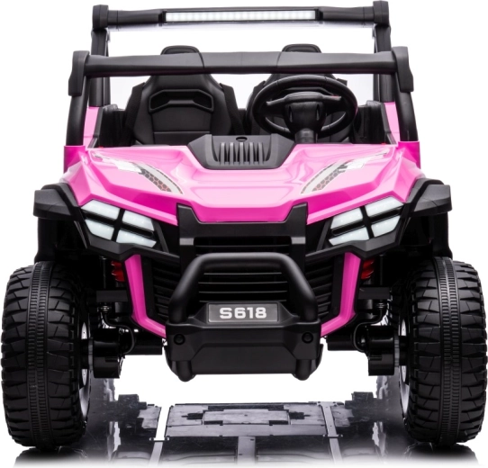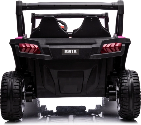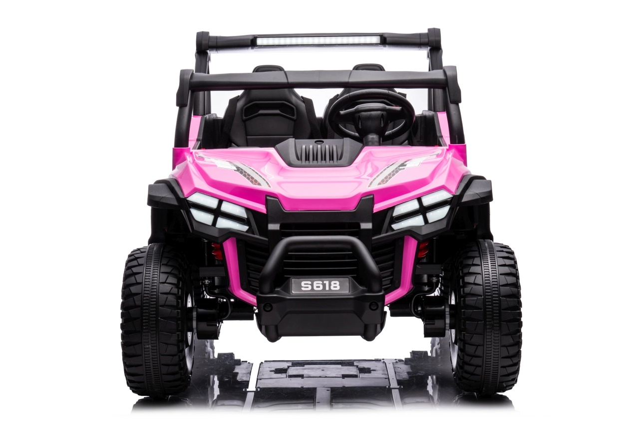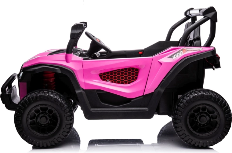 Buggy Gravity 4x4 w kolorze różowym to solidny elektryczny pojazd dla dzieci, łączący moc, komfort i bezpieczeństwo. Dwa wydajne silniki 2×80 W zasilane akumulatorem 24 V 7 Ah zapewniają pewny napęd nawet na nieutwardzonych drogach, a duże piankowe koła EVA (34×13 cm) oraz tylne zawieszenie zwiększają komfort i stabilność. Obsługę ułatwia płynny start, wybór 2 prędkości oraz jazda do przodu/tyłu.